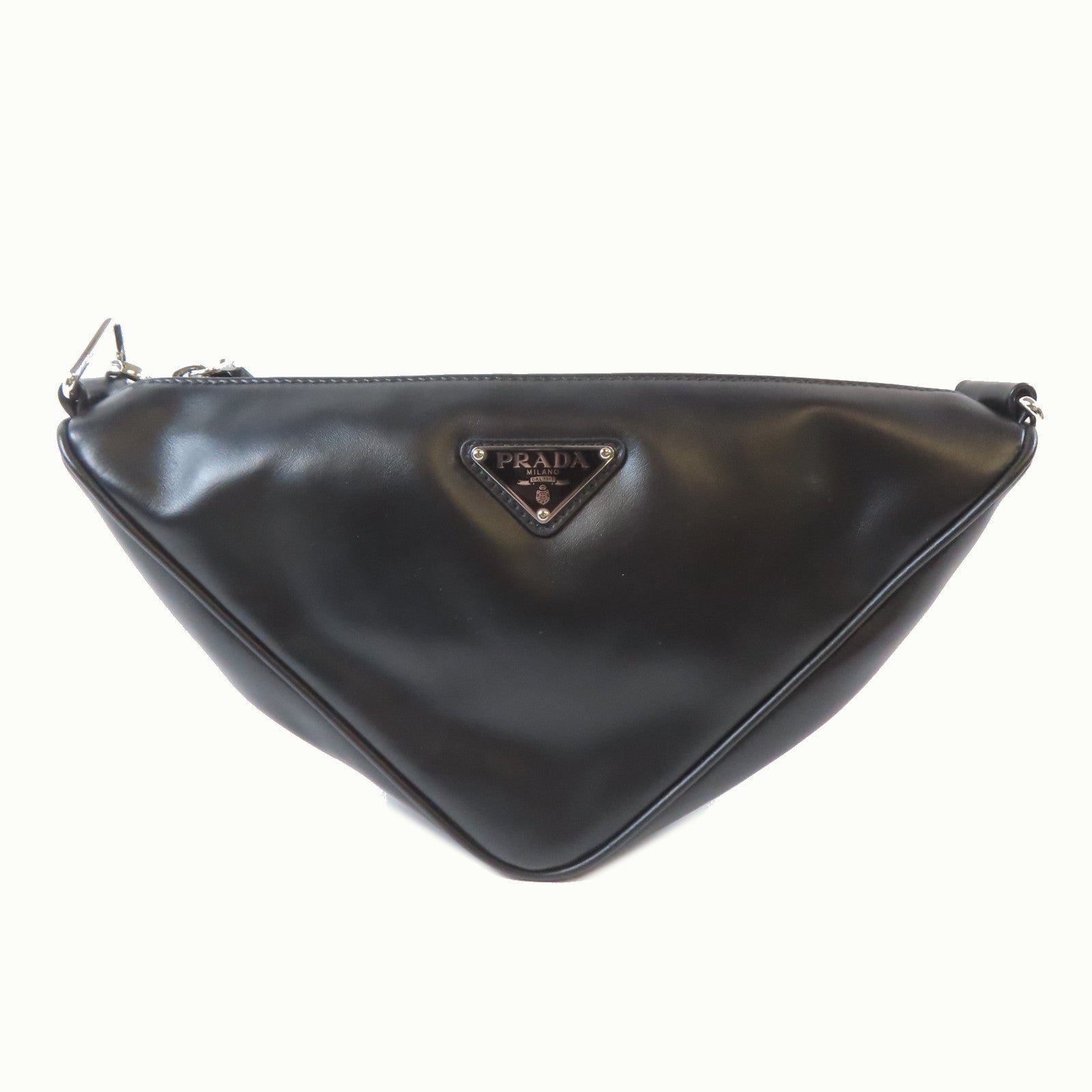 PRADA 皮革Triangle Bag銀扣肩背袋黑色