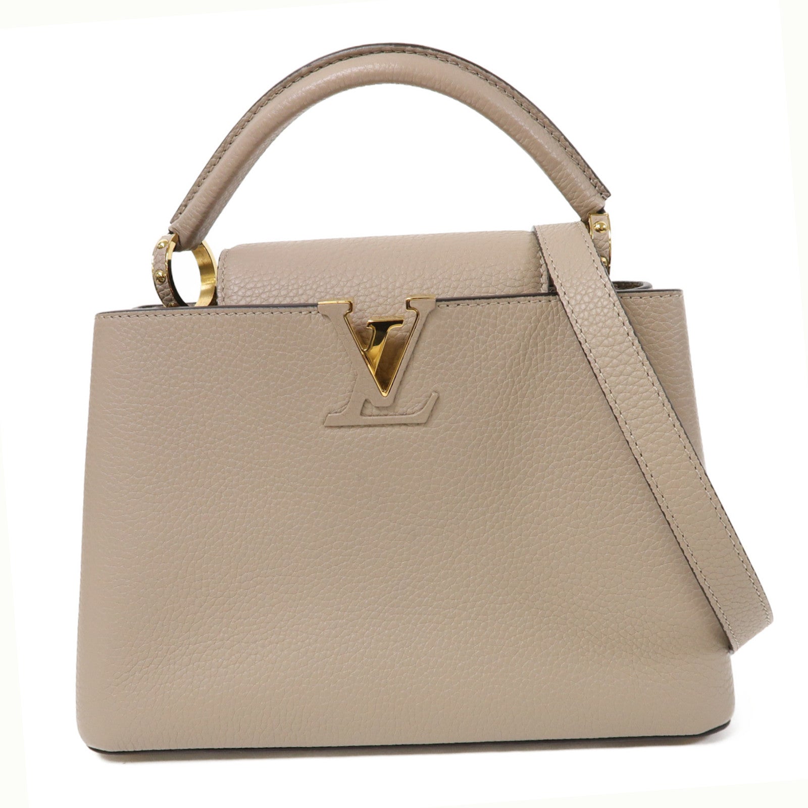 LOUIS VUITTON 牛皮皮革Capucines BB金扣手挽肩背兩用袋米色