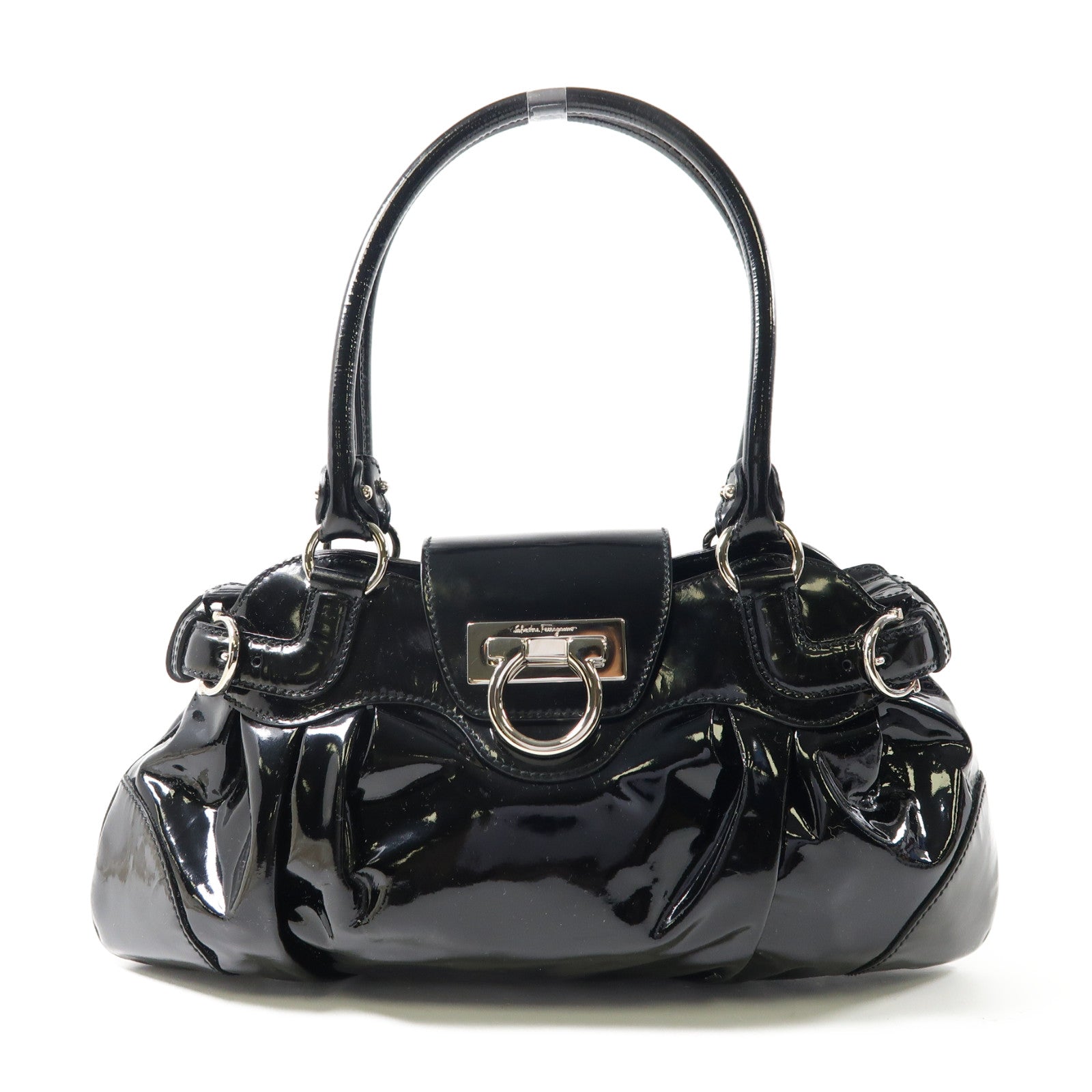 Salvatore Ferragamo 漆皮皮革Hand Bag銀扣手挽袋黑色