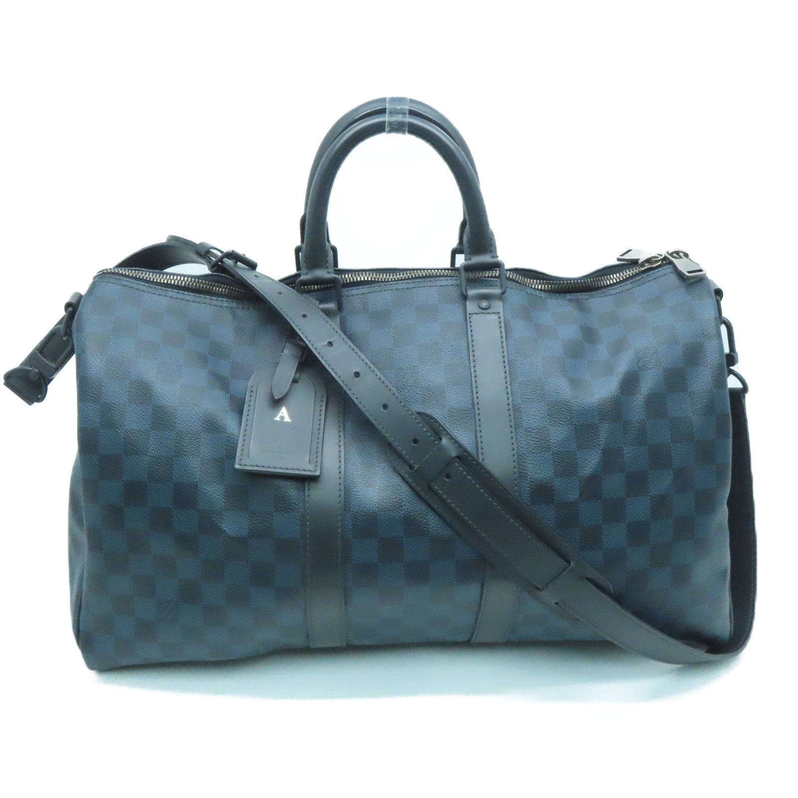 LOUIS VUITTON Damier Keepall A De Bandelier 45波士頓包黑色藍色