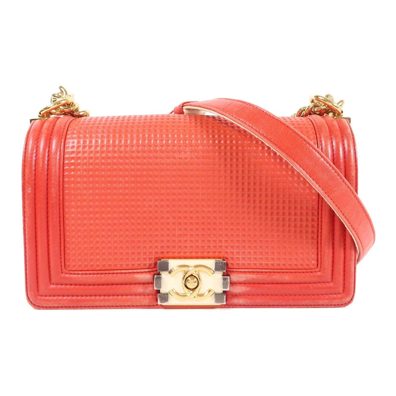 CHANEL 牛皮皮革Boy 25金扣鏈帶肩背袋
