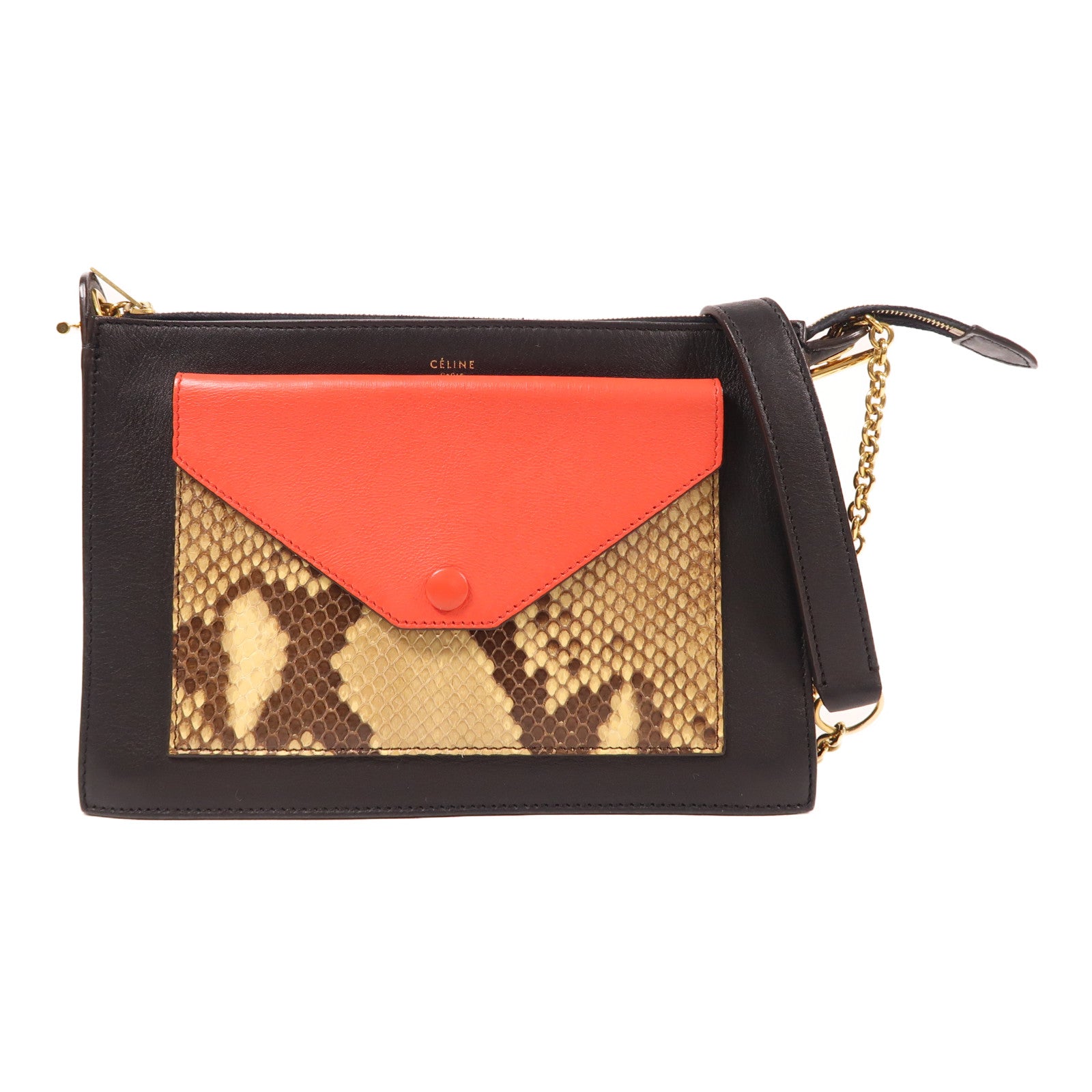 CELINE 牛皮皮革/蛇皮皮革Chain Shoulder金扣鏈帶肩背袋