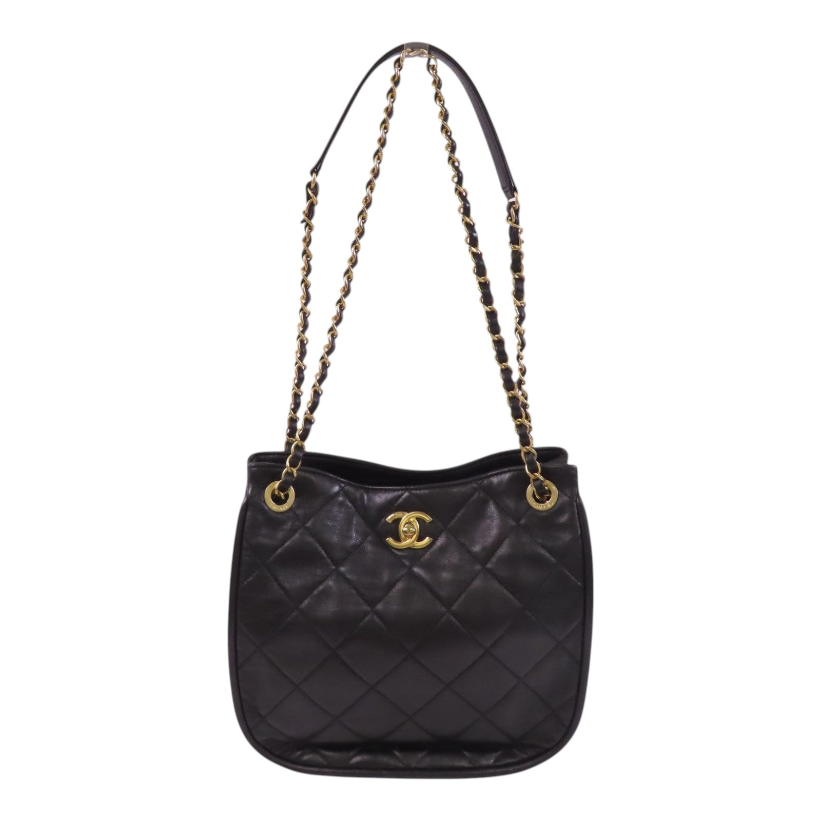 CHANEL 牛皮皮革Hobo Bag金扣鏈帶肩背袋