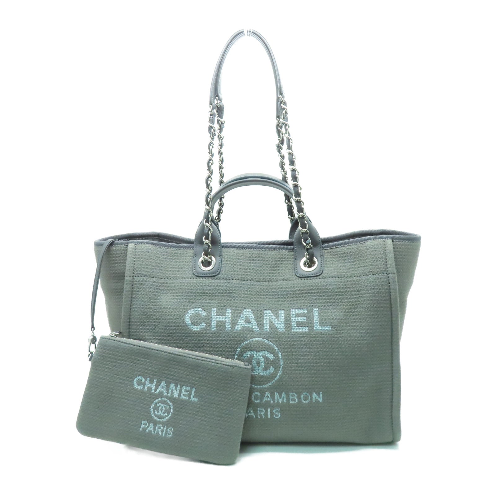 CHANEL 帆布Deauville Tote銀扣手挽肩背兩用袋灰色