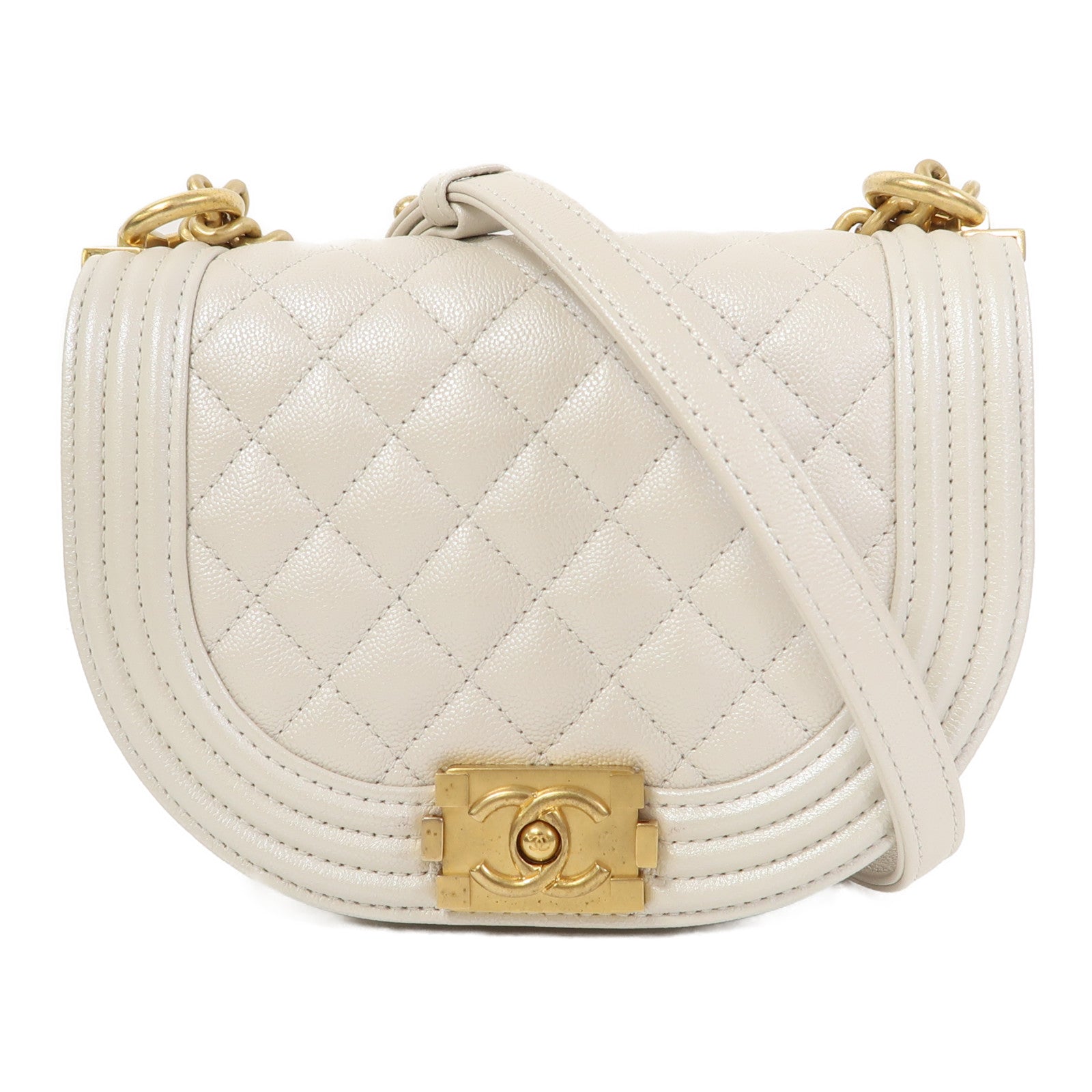 CHANEL 菱格牛皮皮革Boy Messenger金扣鏈帶肩背袋米色