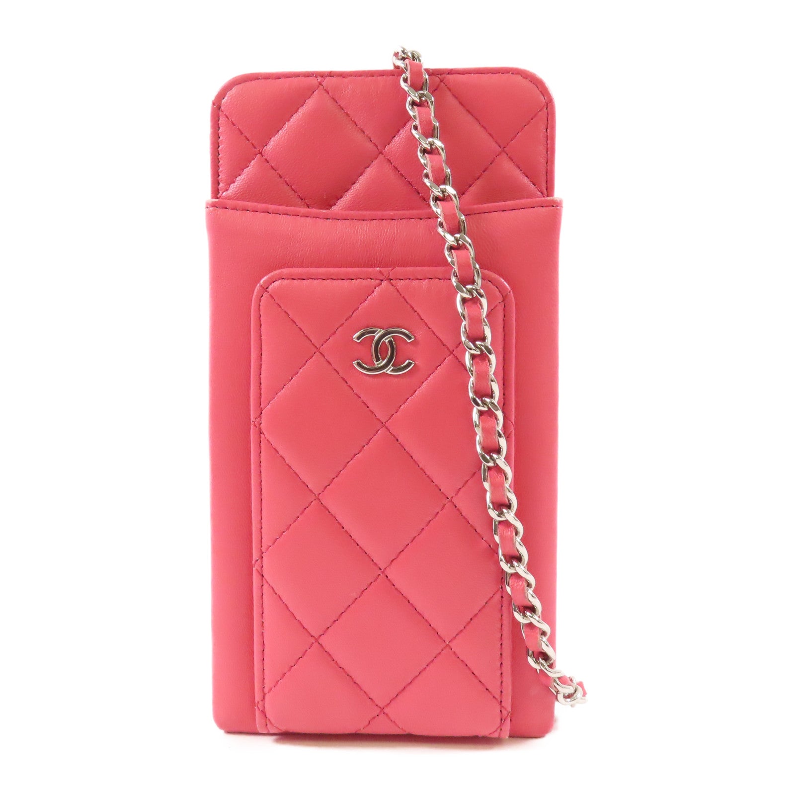 CHANEL 羊皮皮革Phone Case銀扣鏈帶肩背袋