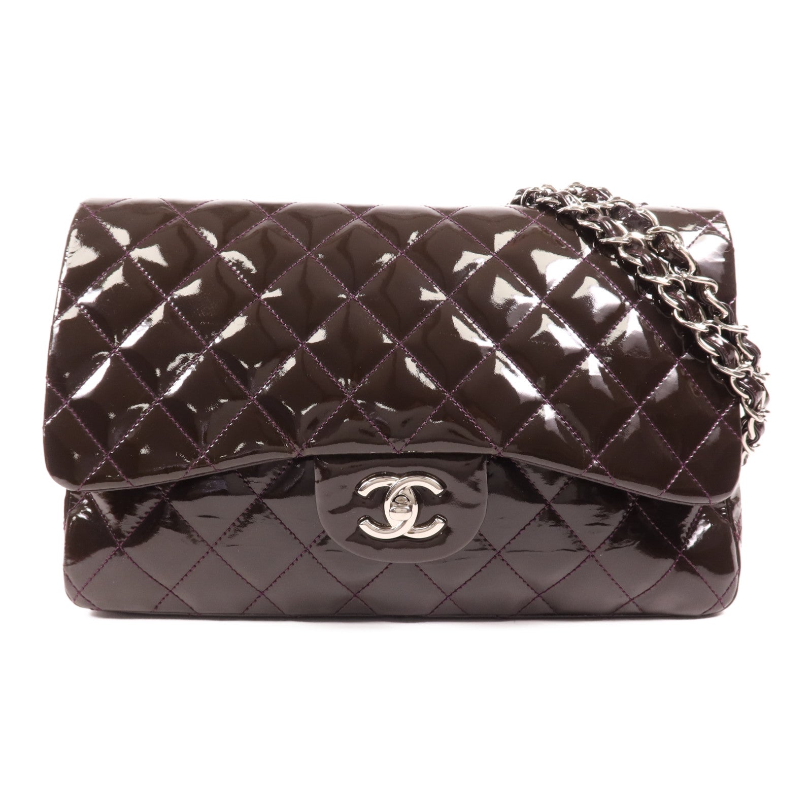 CHANEL 漆皮皮革Large Classic銀扣鏈帶肩背袋