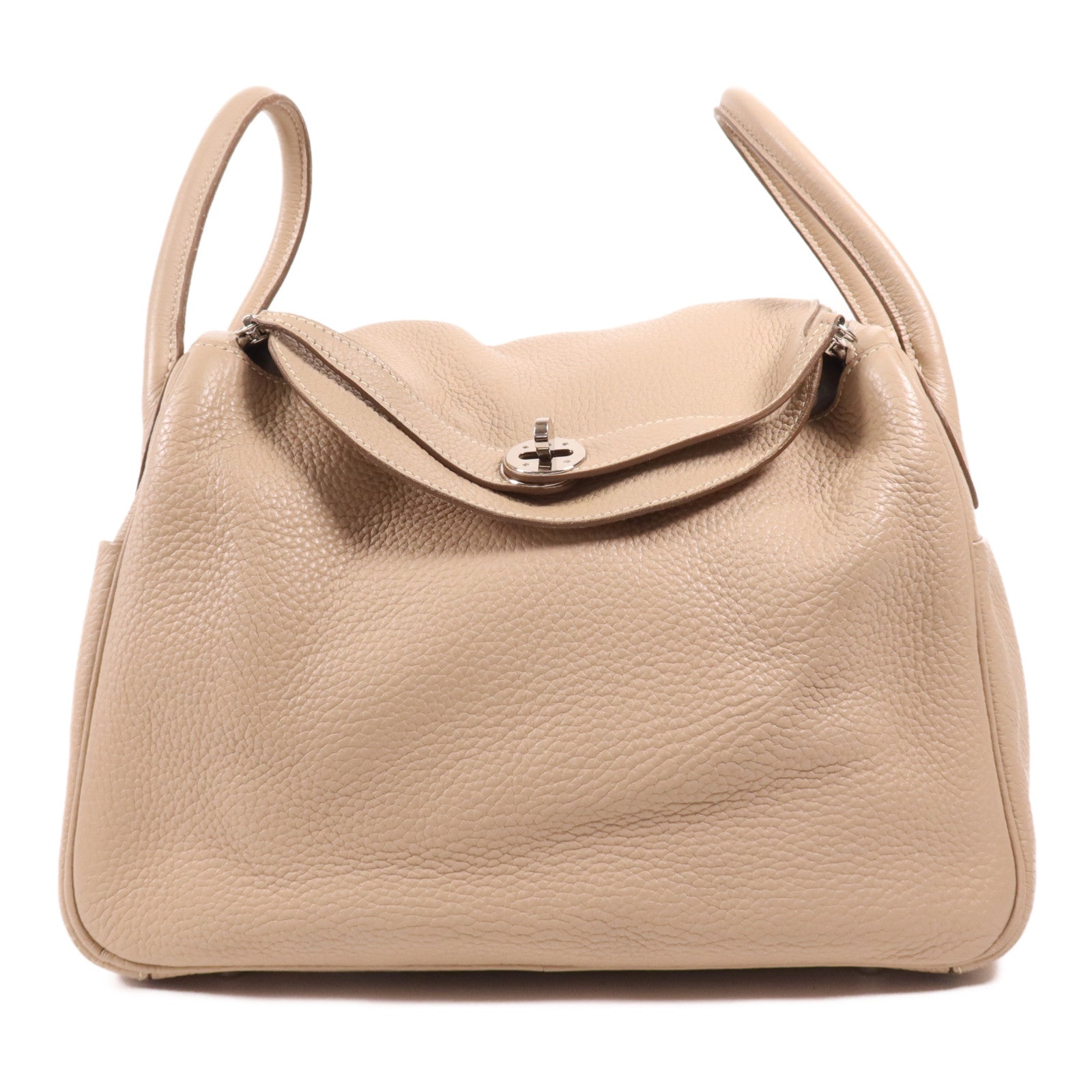 HERMES Clemence皮革Lindy 30銀扣手挽肩背兩用袋Argile