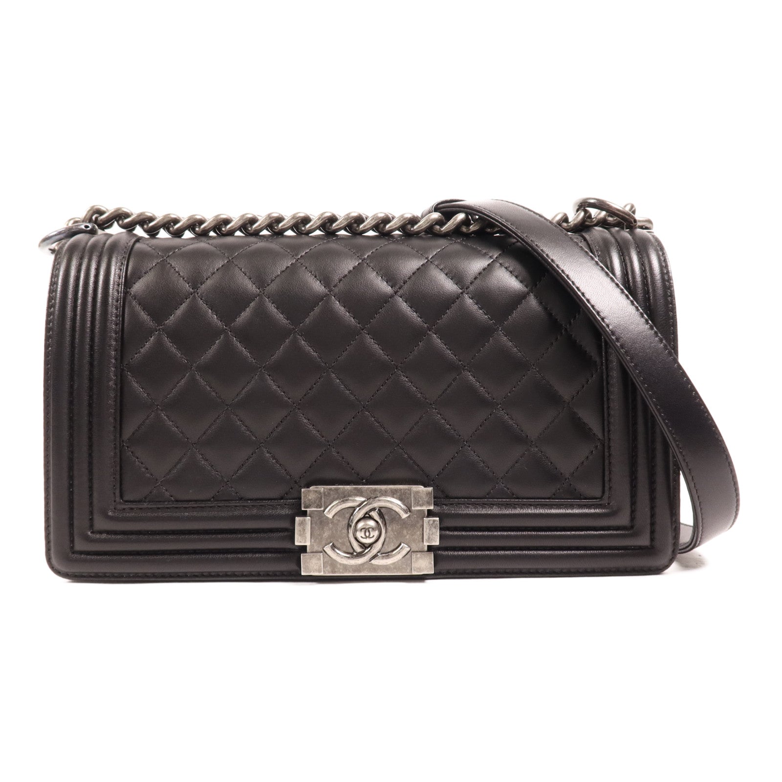 CHANEL 羊皮皮革Boy 25銀扣肩背袋