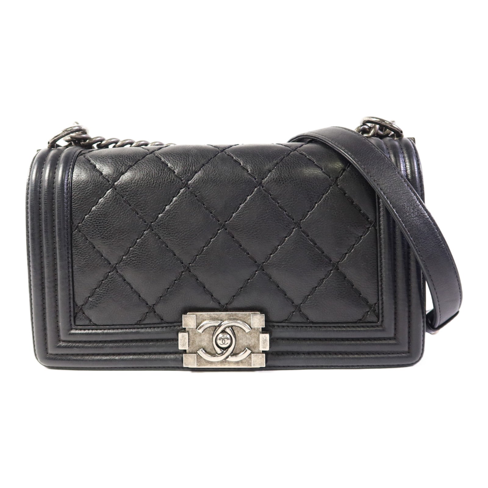CHANEL 牛皮皮革Boy 25鏈帶肩背袋