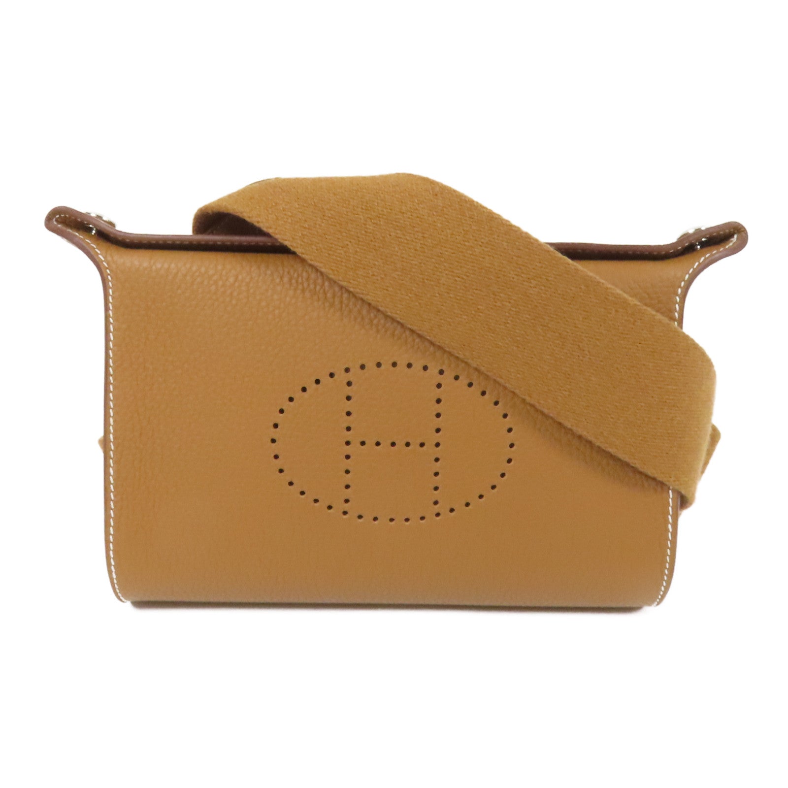 HERMES Togo皮革Videpoches銀扣肩背袋Gold