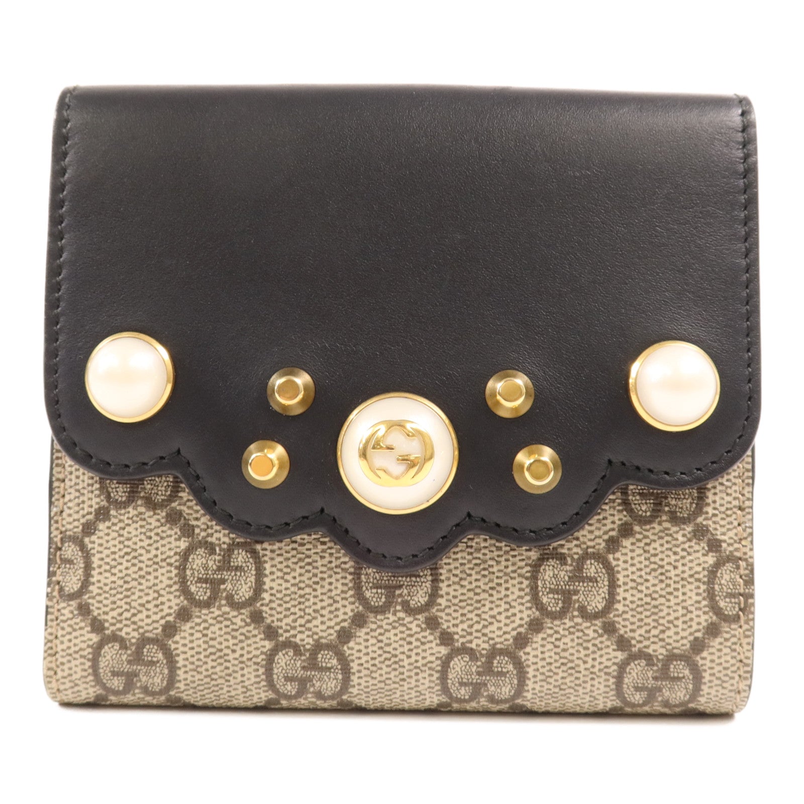 GUCCI 塗層帆布/牛皮皮革GG Supreme Wallet金扣錢包