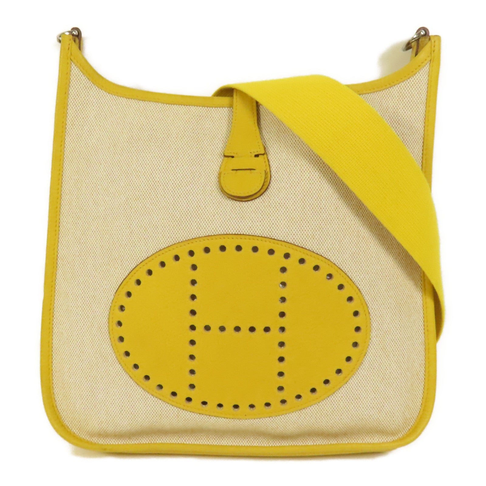 HERMES 帆布/皮革Evelyne PM銀扣肩背袋Soleil