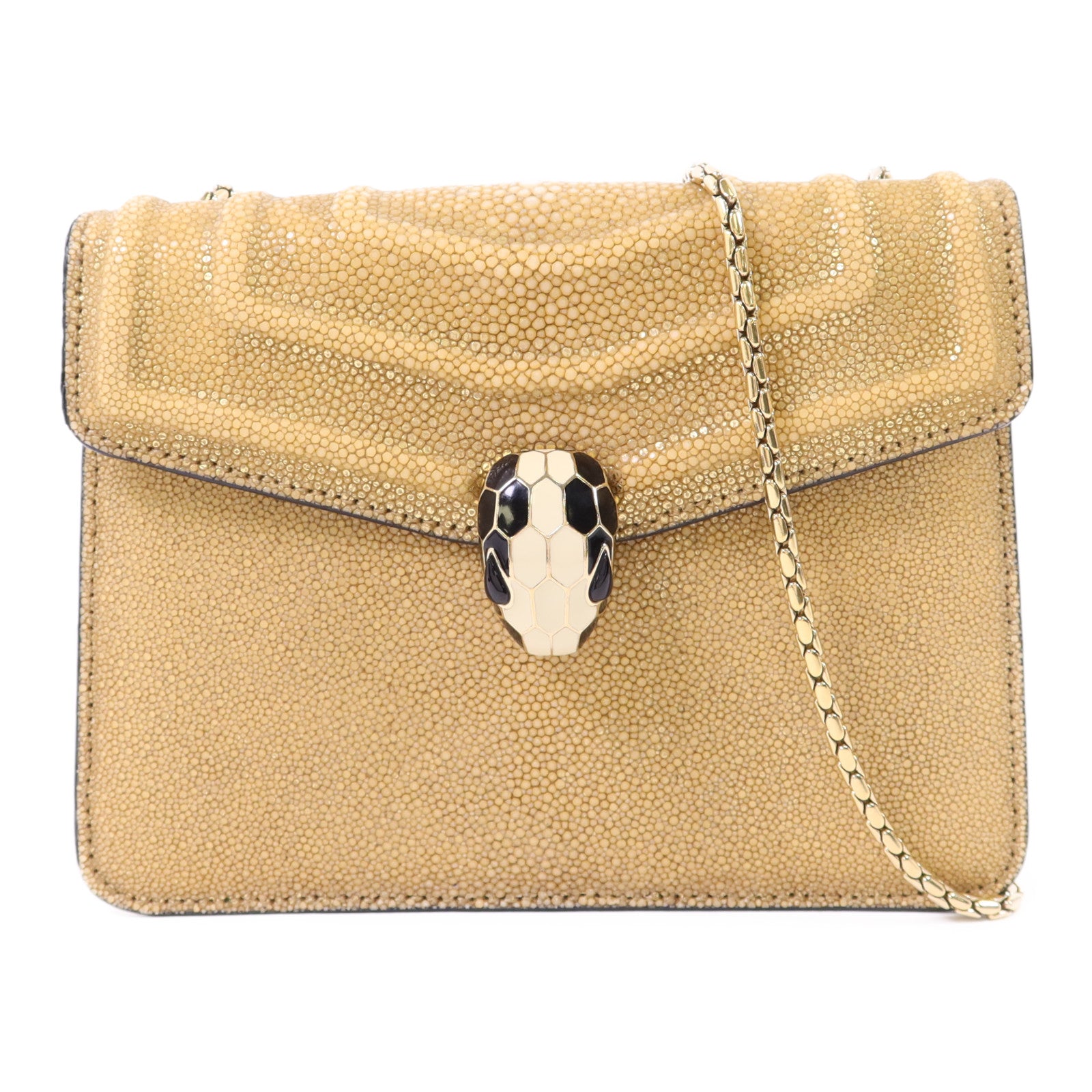 BVLGARI 魔鬼魚皮革Serpenti Forever金扣鏈帶肩背袋