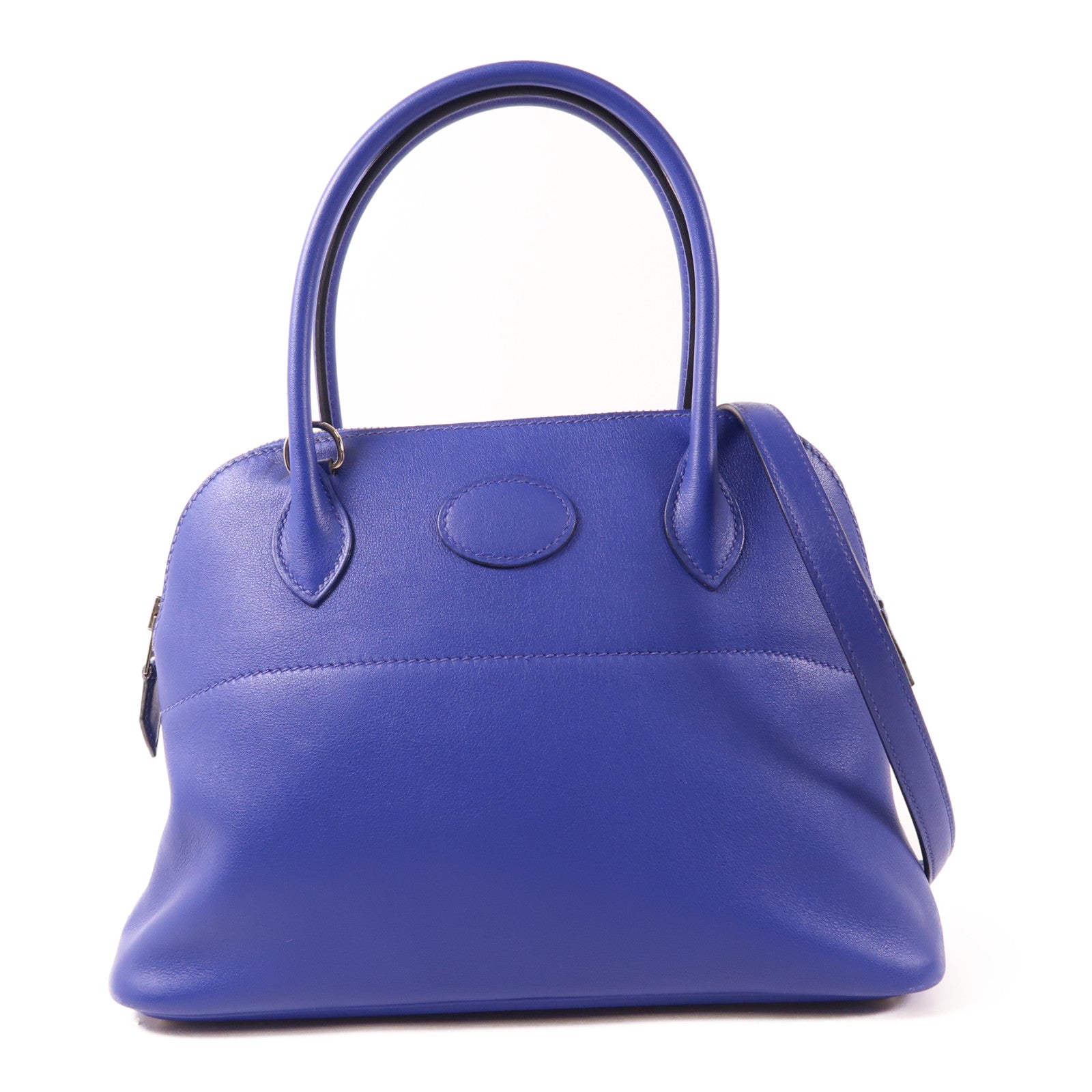 HERMES 【激減優惠】Evercolor皮革Bolide 27銀扣手挽肩背兩用袋7T Bleu Electrique