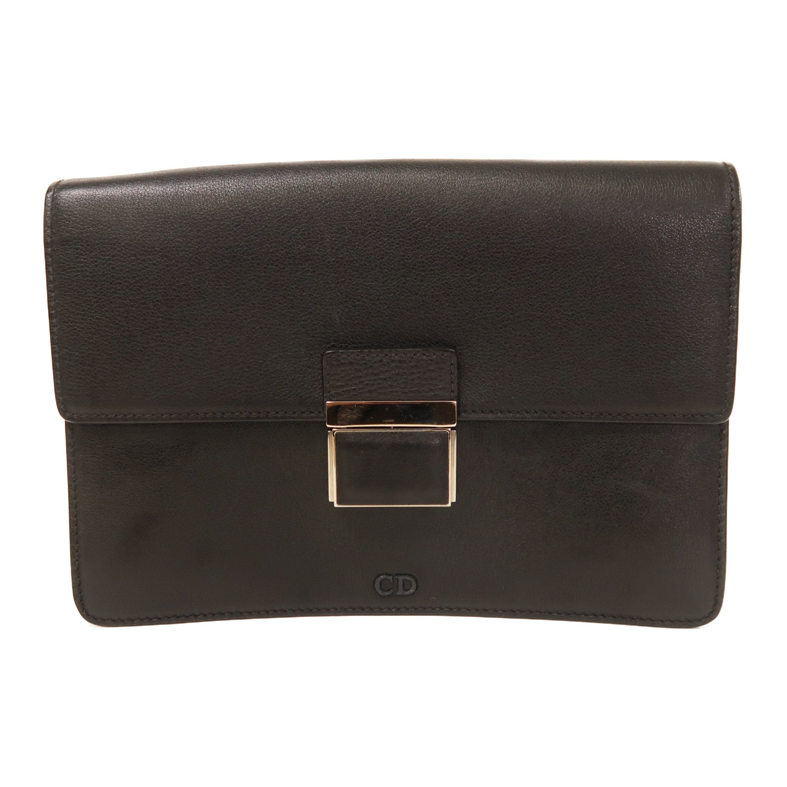Dior 牛皮皮革Pouch銀扣手拿包黑色