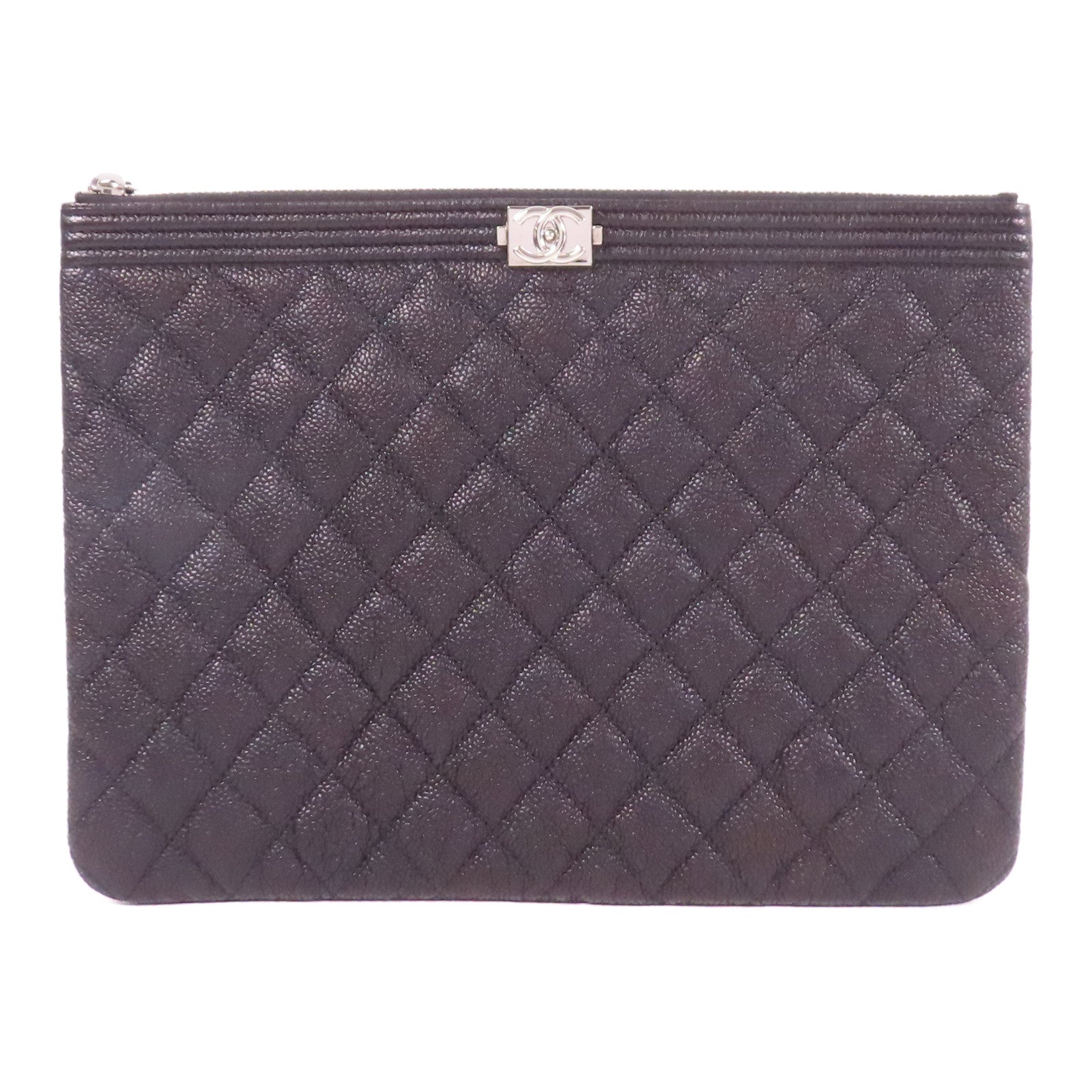 CHANEL 牛皮皮革Pouch銀扣手拿包