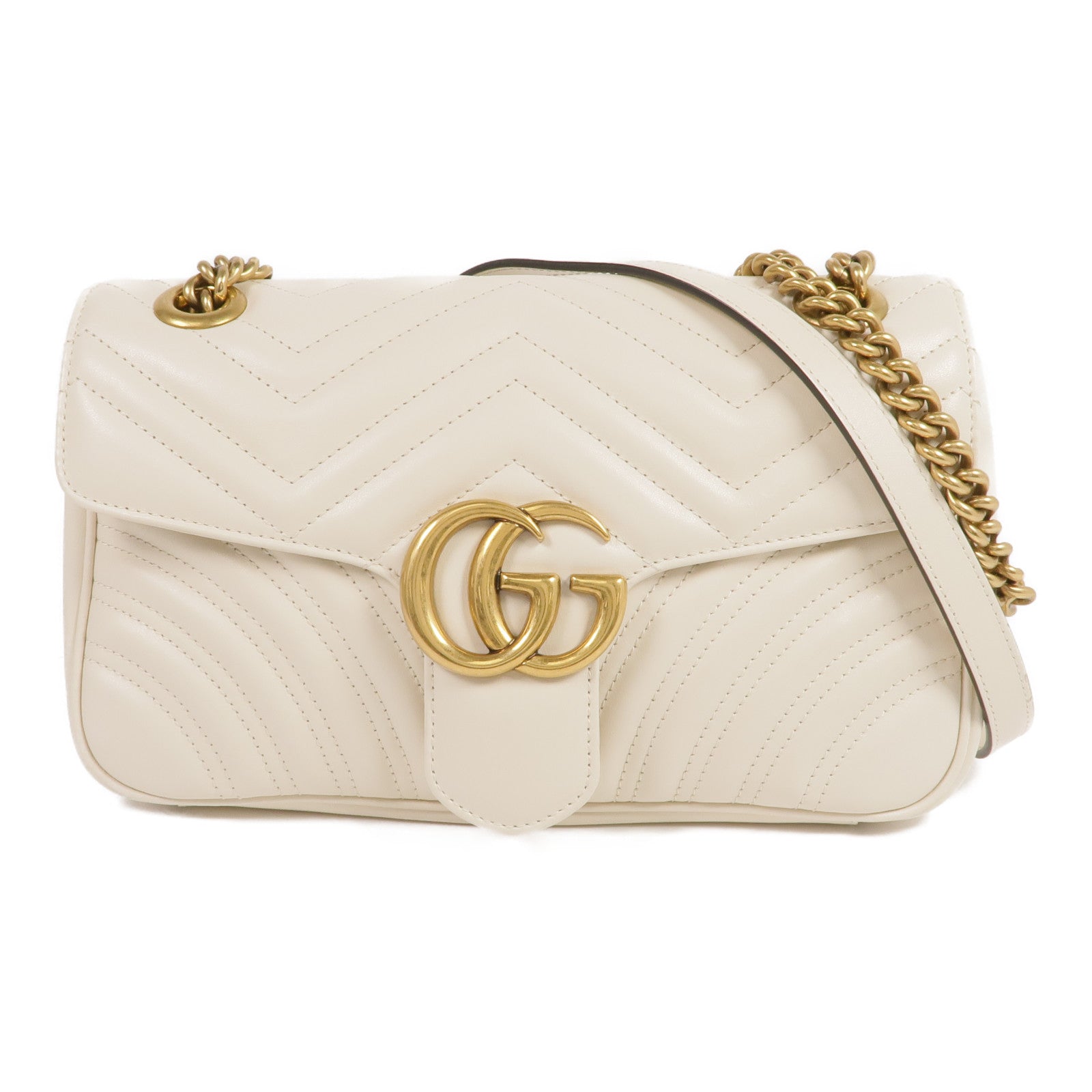 GUCCI 羊皮皮革GG Marmont金扣鏈帶肩背袋