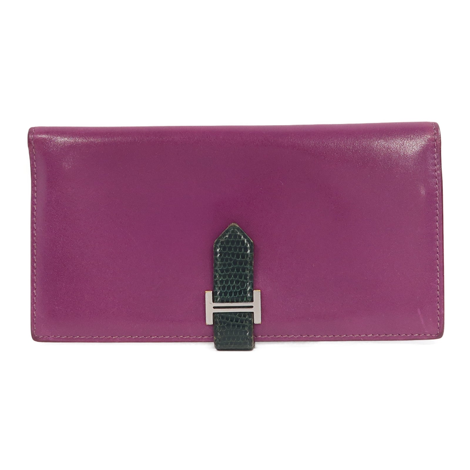 HERMES 【激減優惠】Tadelakt皮革/蜥蝪皮革Bearn銀扣長錢包汽油藍色/紫色