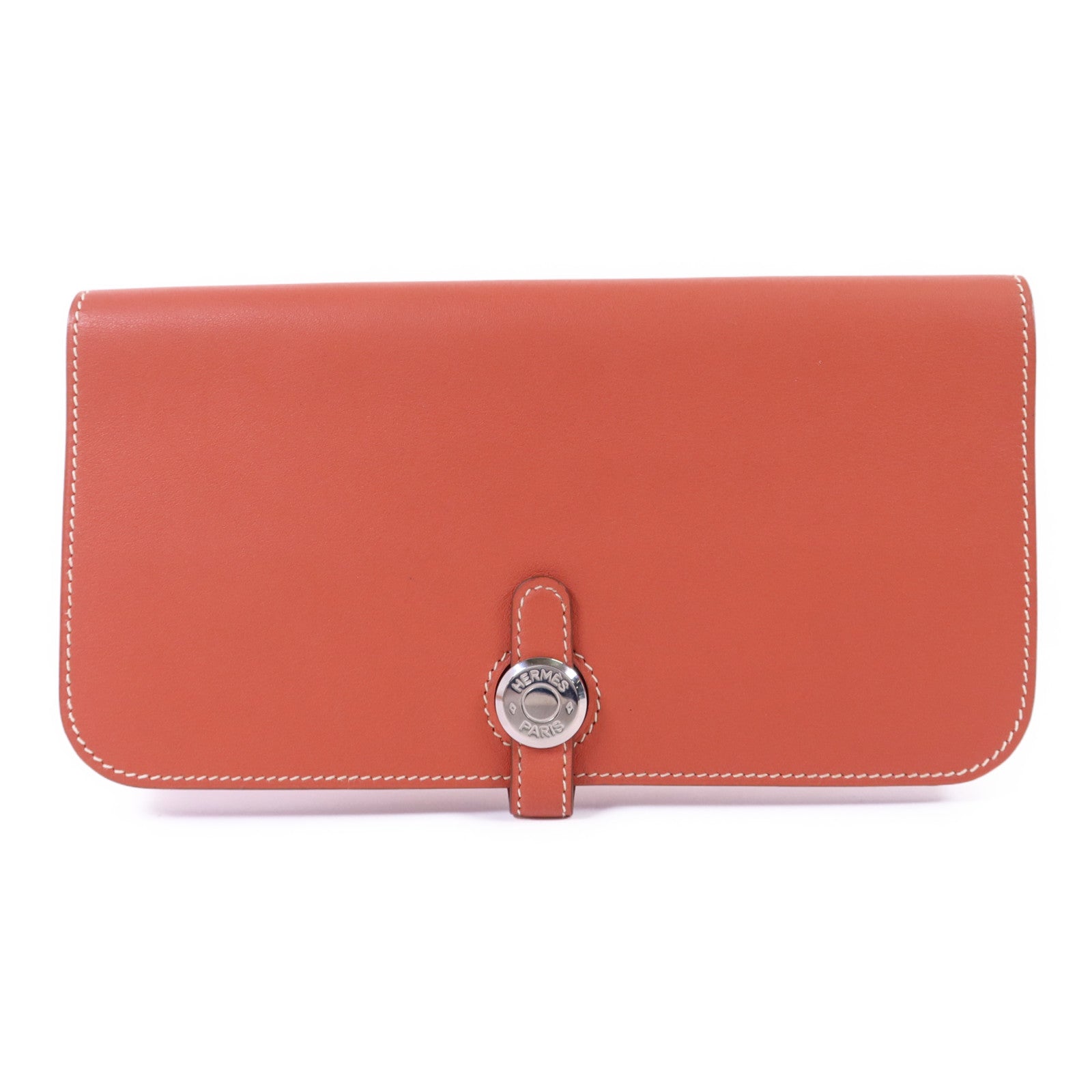 HERMES Swift皮革Dogon銀扣錢包Orange