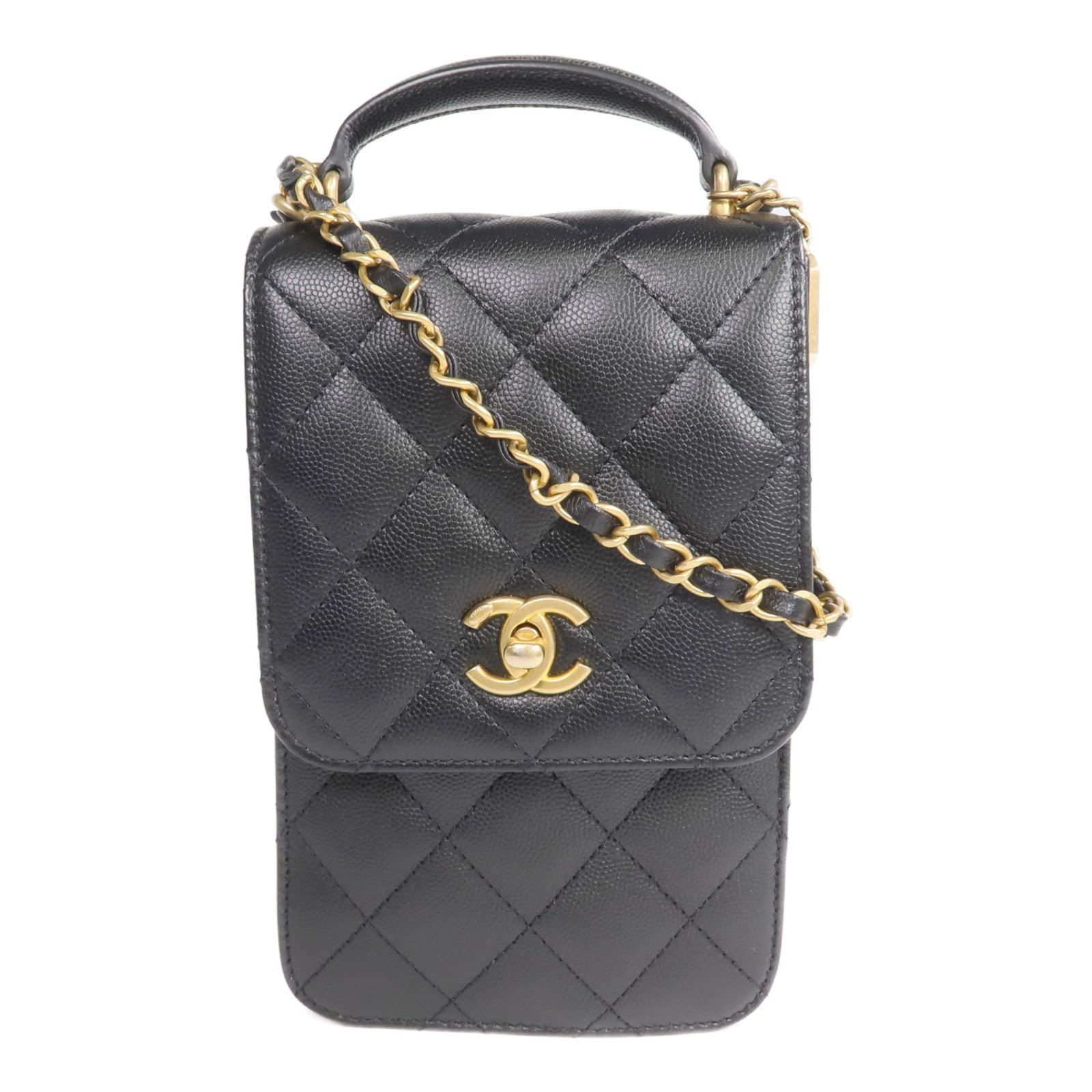 CHANEL 牛皮皮革Phone Holder金扣手挽肩背兩用袋