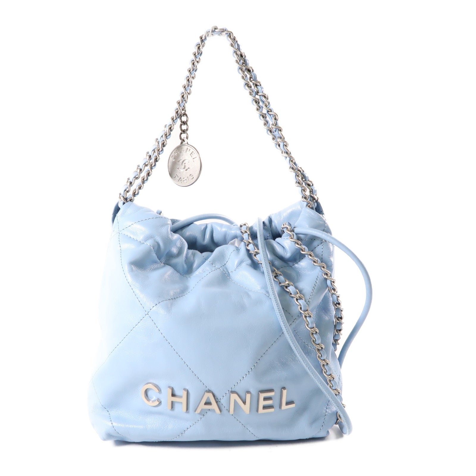 CHANEL 羊皮皮革Mini 19銀扣Shoulder Bag粉藍色