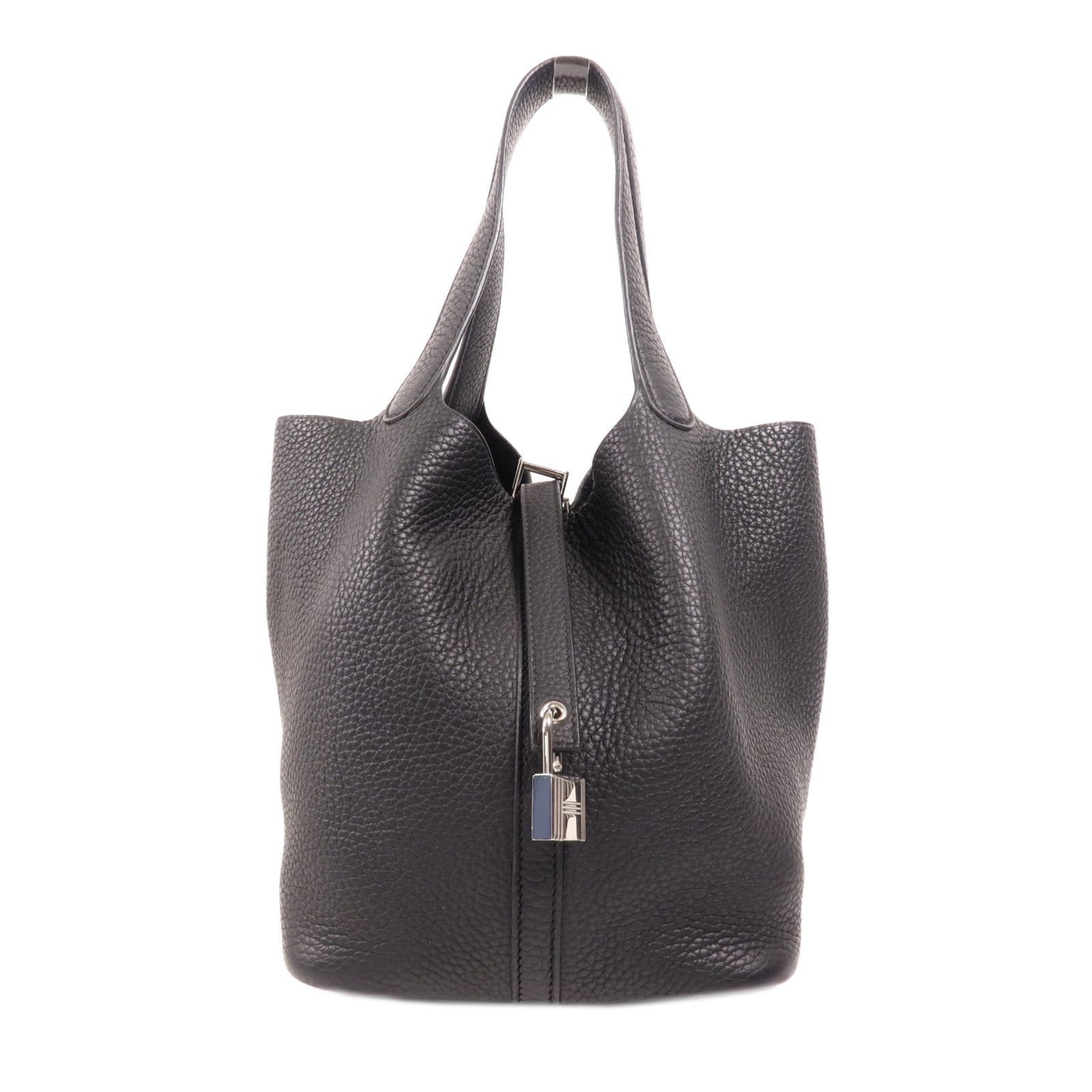 HERMES Clemence皮革Picotin MM銀扣手挽袋Noir