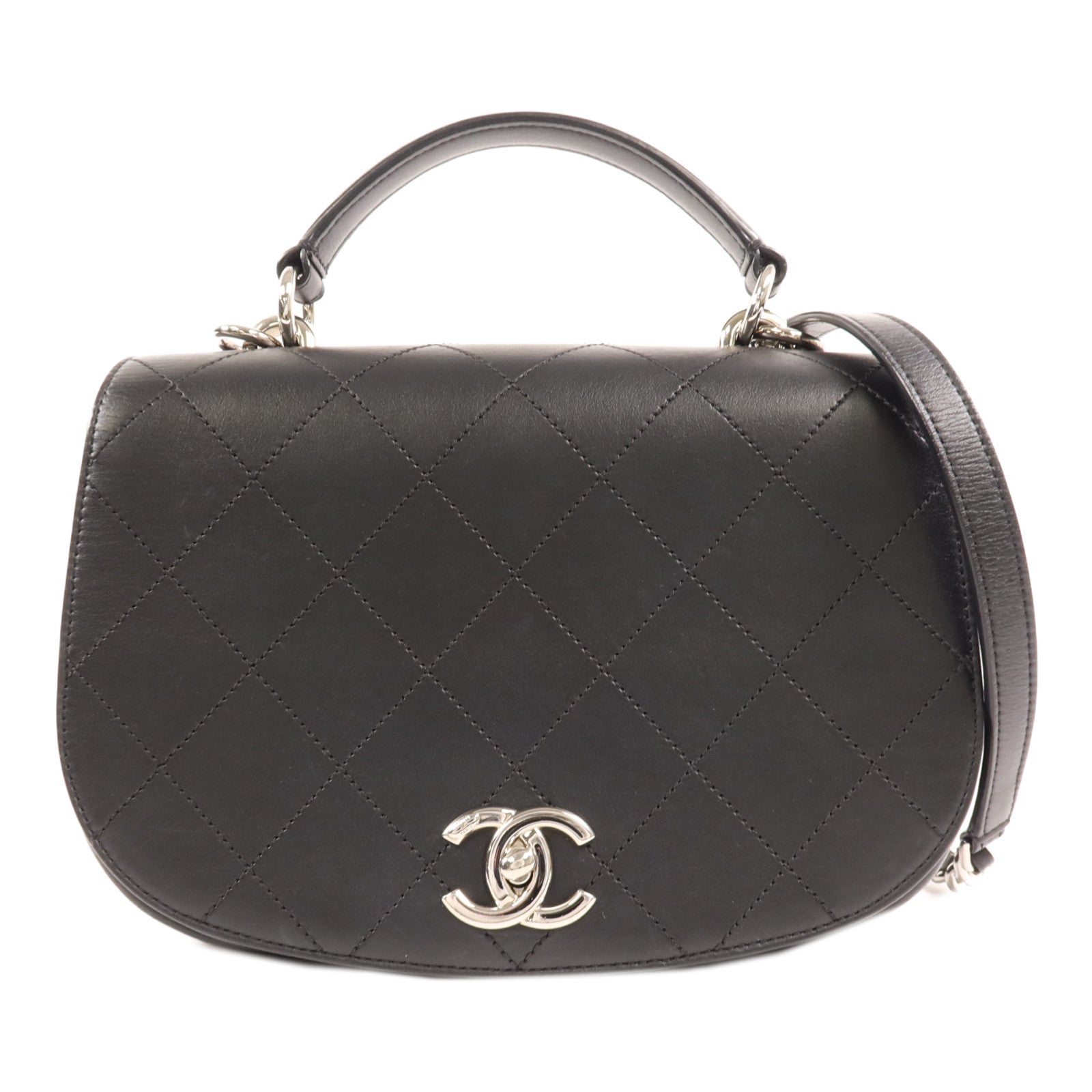 CHANEL 牛皮皮革Chain Shoulder銀扣手挽肩背兩用袋