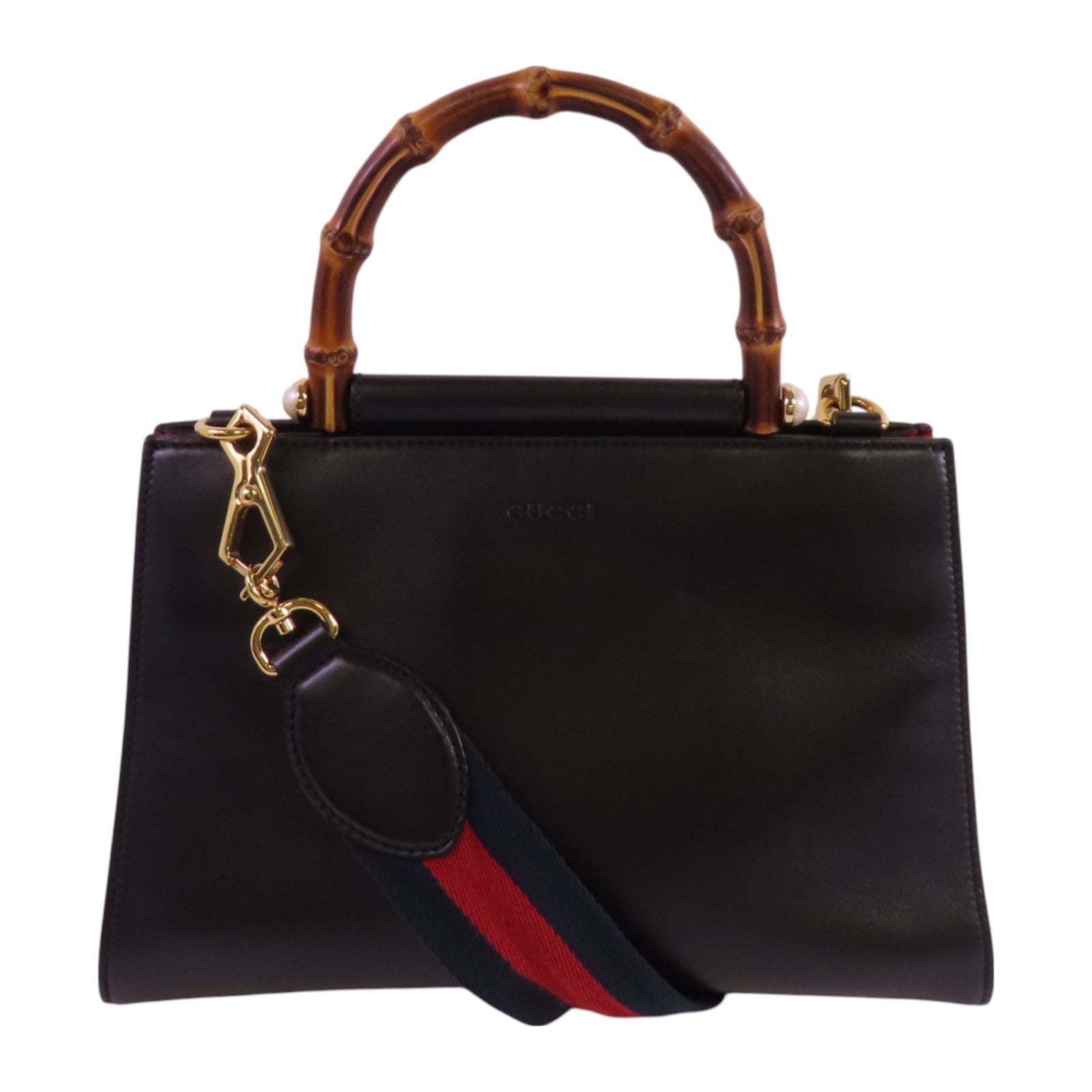 GUCCI 牛皮皮革Nymphaea Bamboo金扣手挽肩背兩用袋