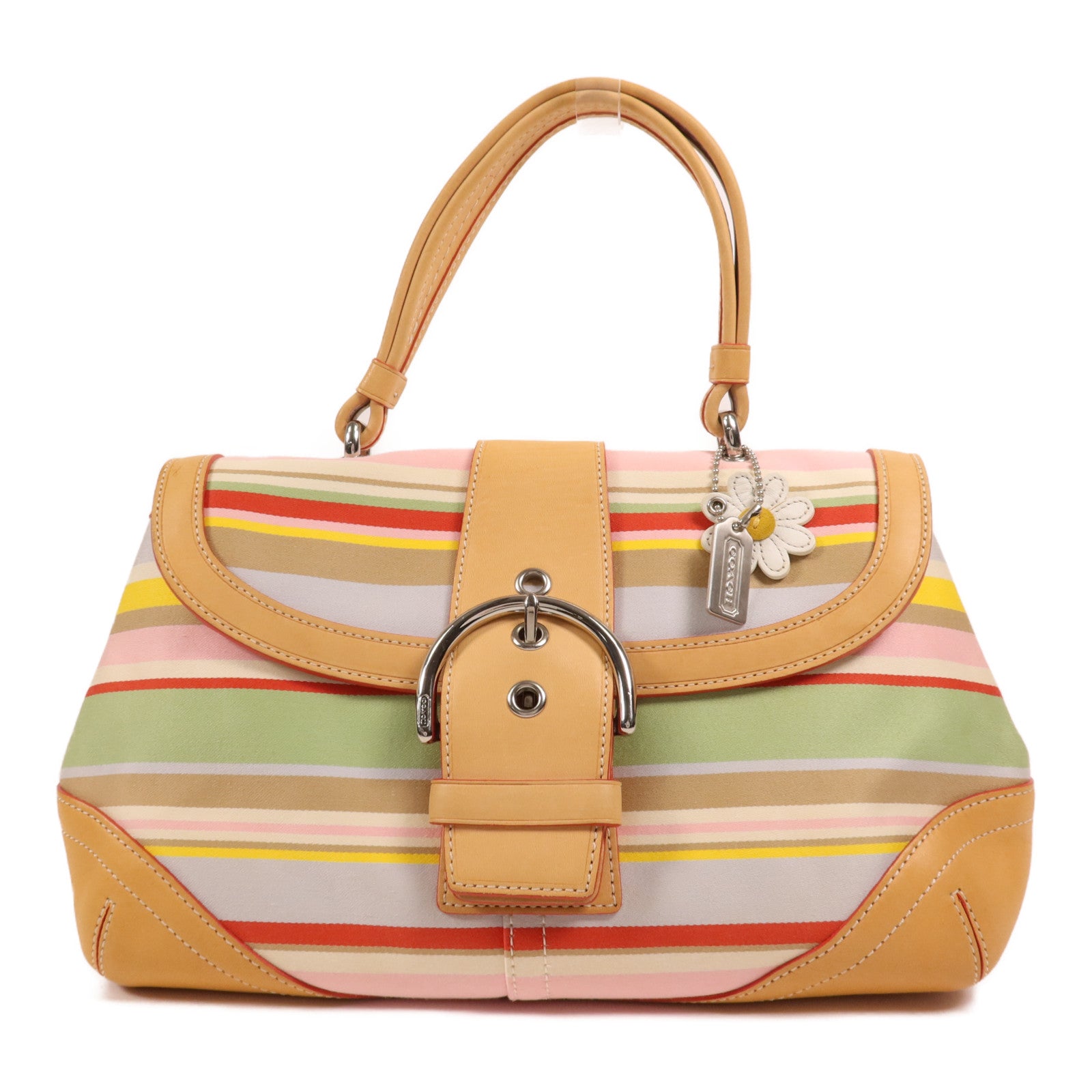 COACH 皮革/棉質Hand Bag銀扣手挽袋