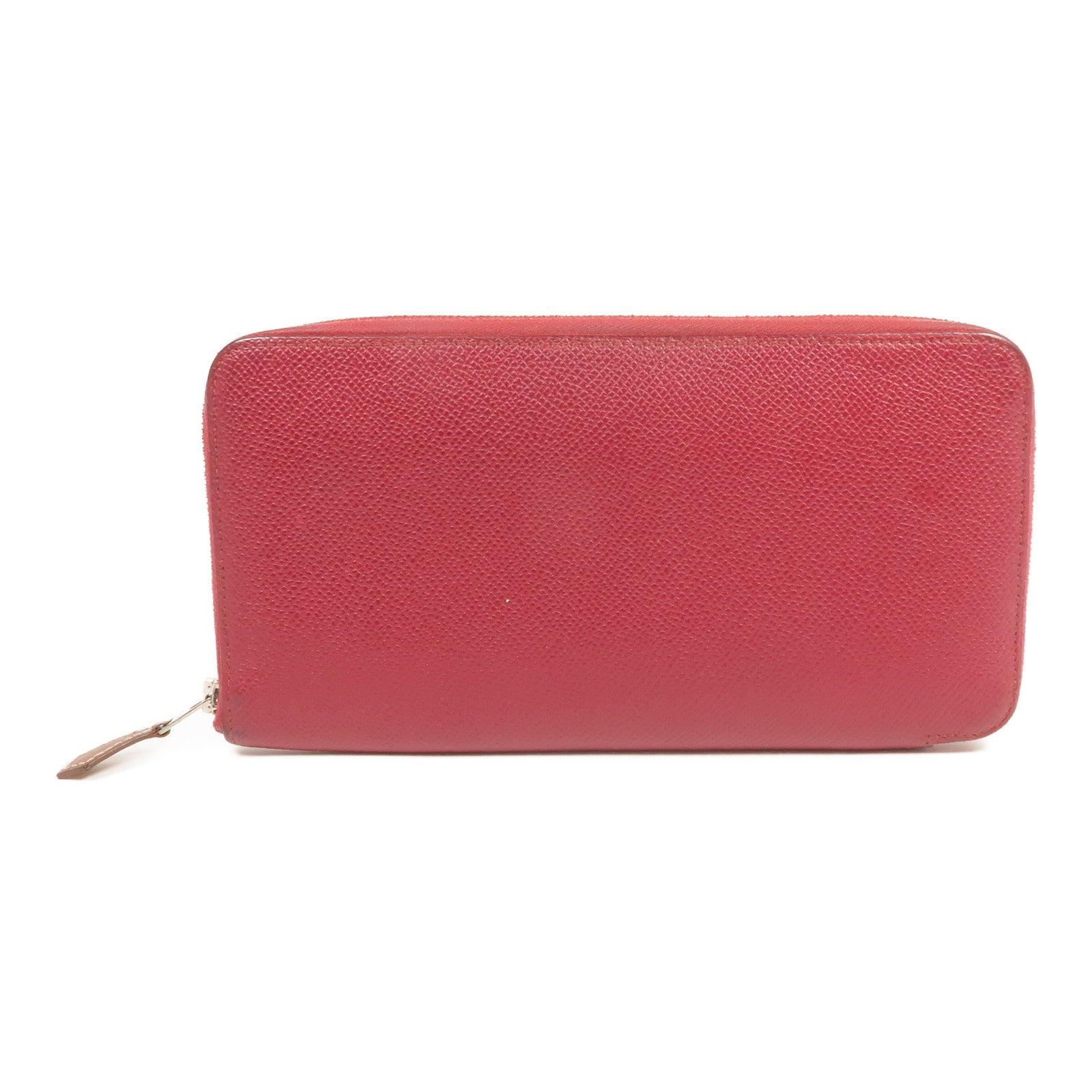 HERMES Epsom皮革/絲質Silk In Long Wallet銀扣長錢包Rubis