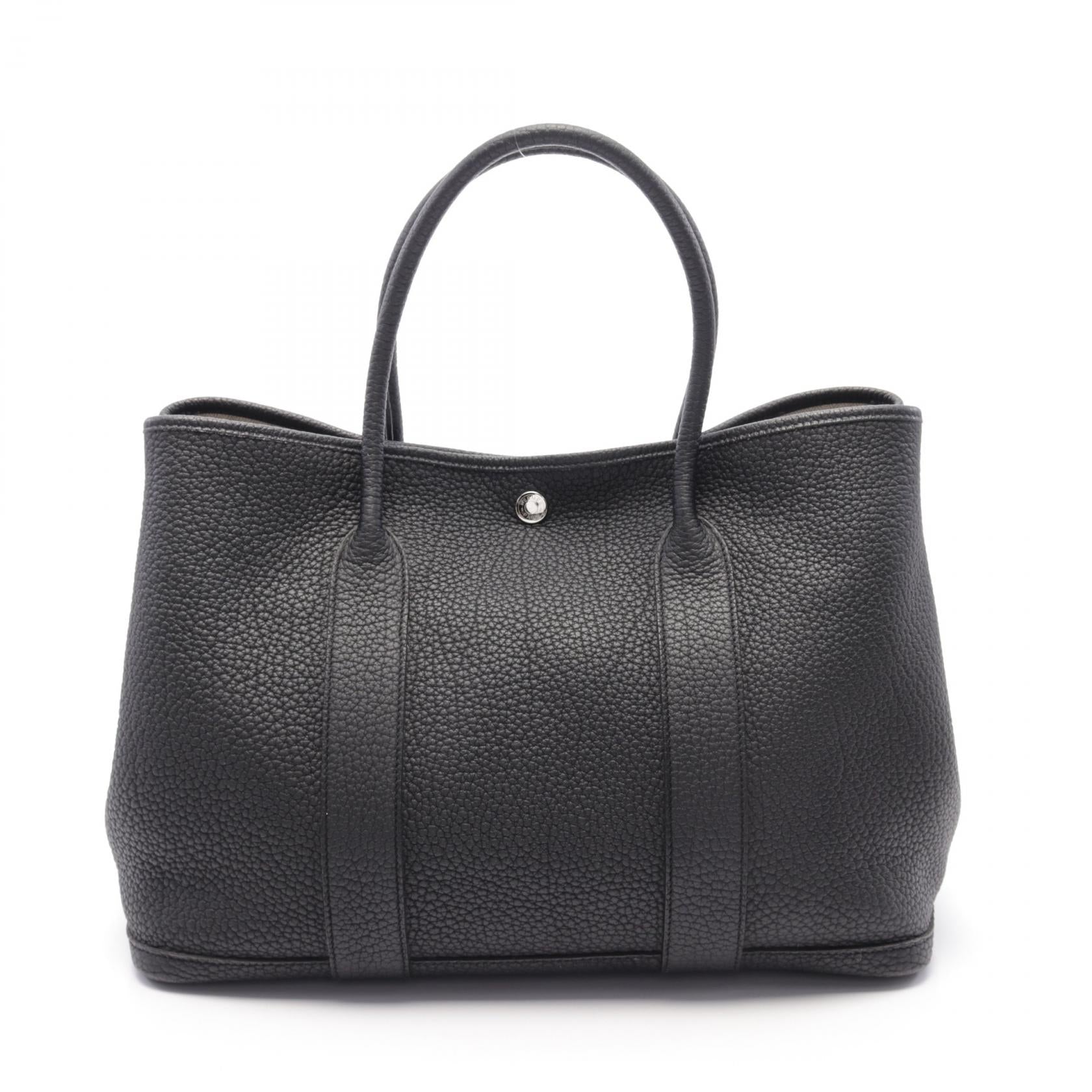HERMES Negonda皮革Garden Party PM銀扣手挽袋Noir
