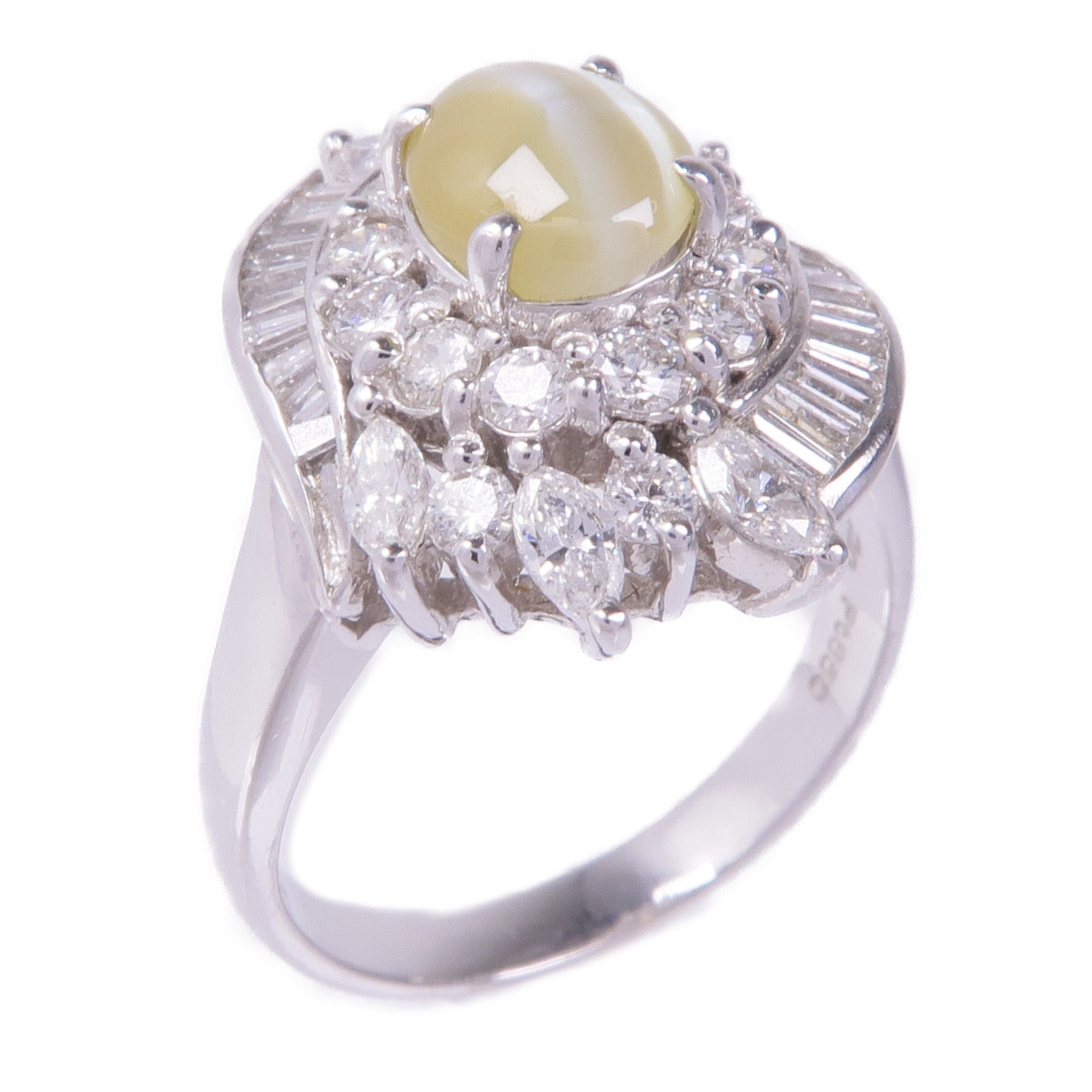 JEWELRY PT850鉑金Chrysoberyl Cats Eye Diamond Ring金綠玉貓眼/鑽石戒指US#6