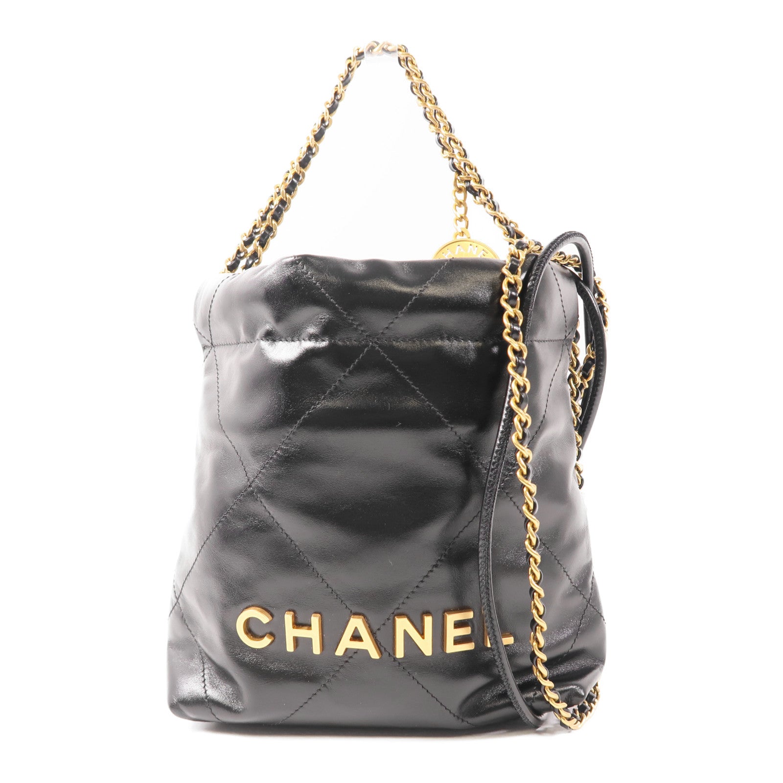 CHANEL 牛皮皮革Chanel 22金扣鏈帶手挽肩背兩用袋