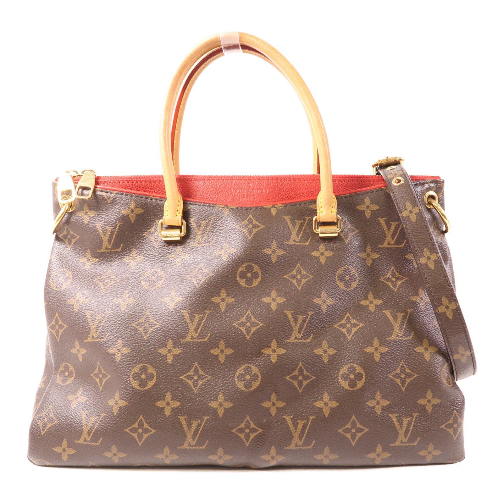 LOUIS VUITTON Monogram Pallas金扣手挽肩背兩用袋棕色/紅色