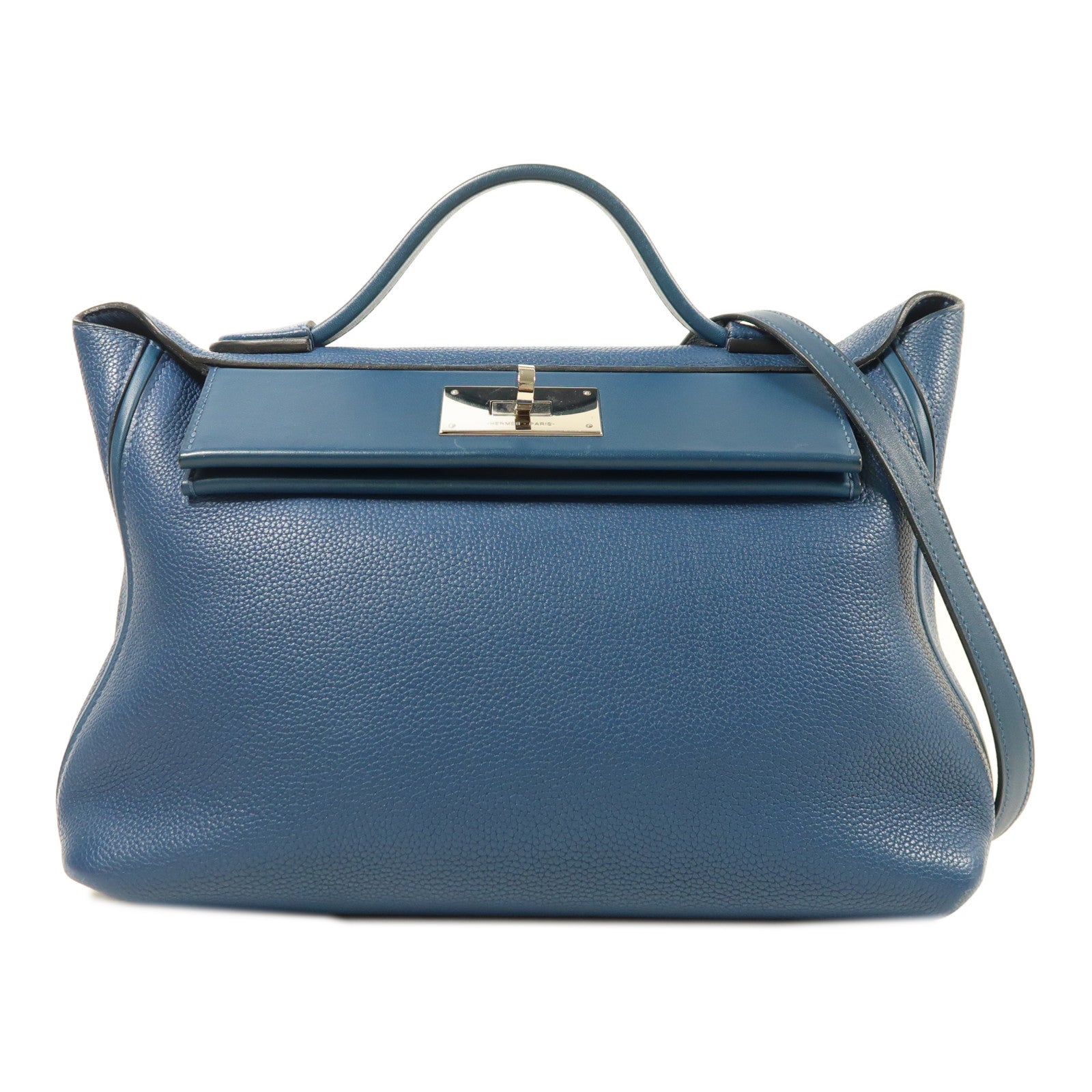 HERMES Clemence皮革24/24 29cm銀扣手挽肩背兩用袋Deep Bleu
