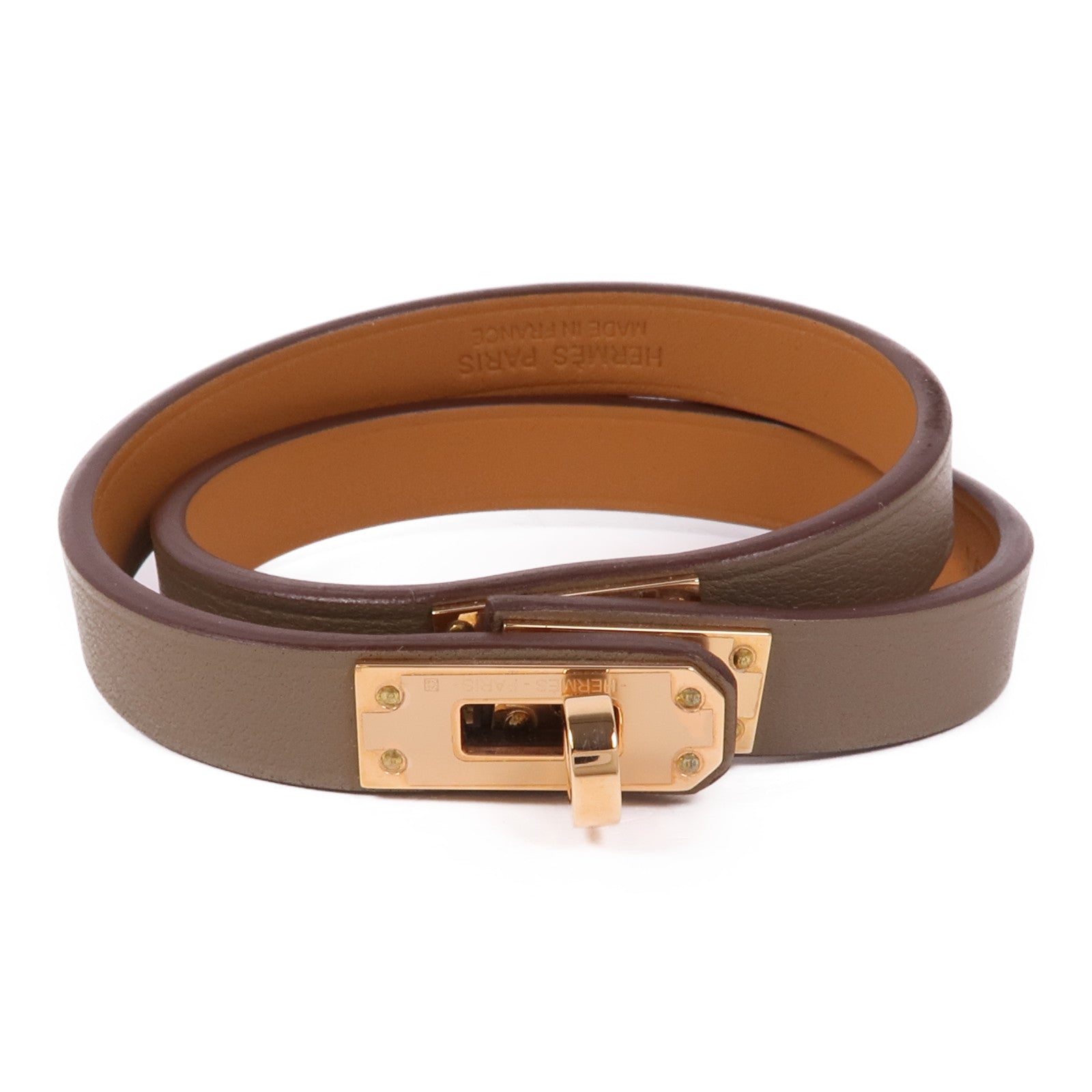 HERMES Swift皮革Mini Kelly Bracelet手鐲Etoupe