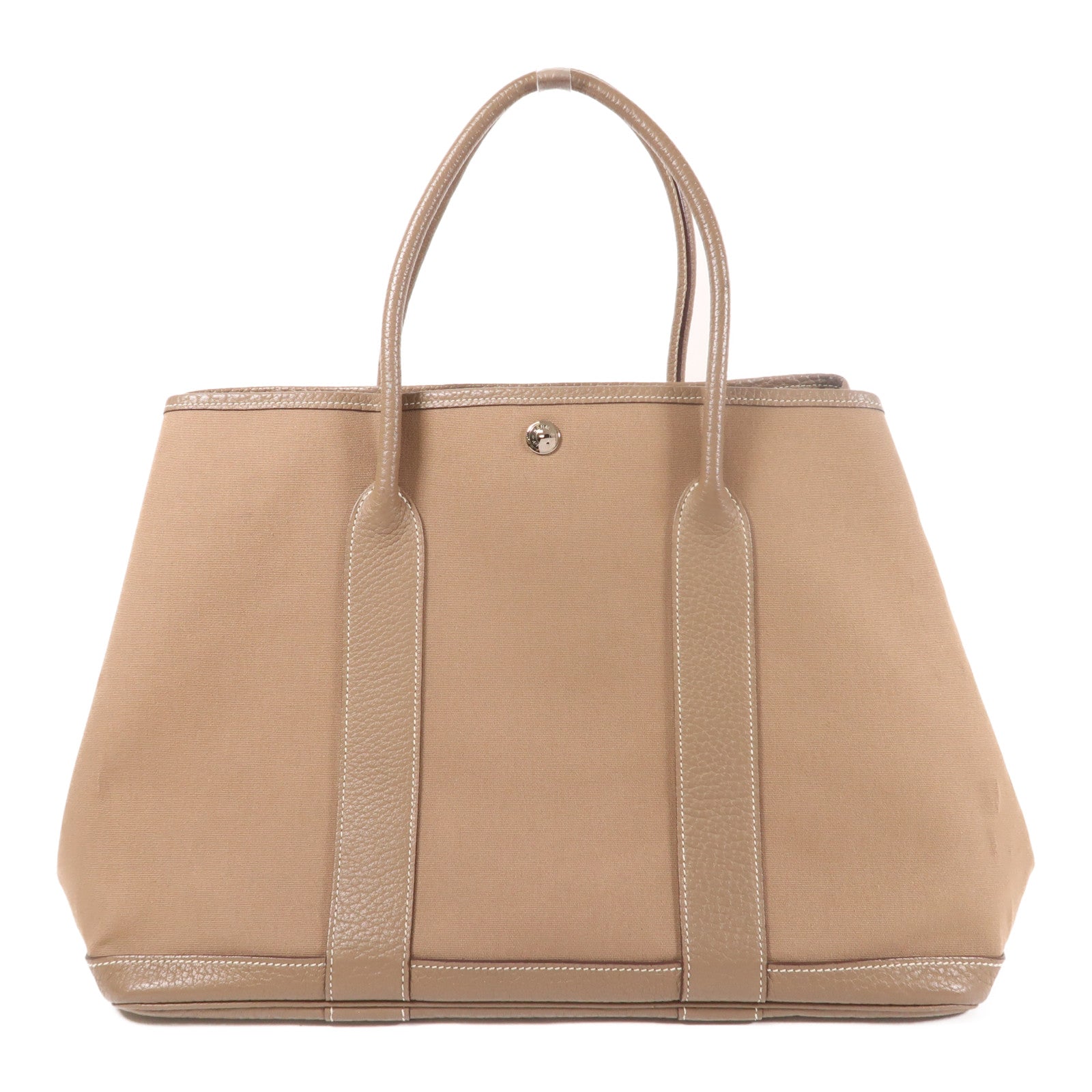 HERMES 帆布GardenParty PM手挽袋Etoupe