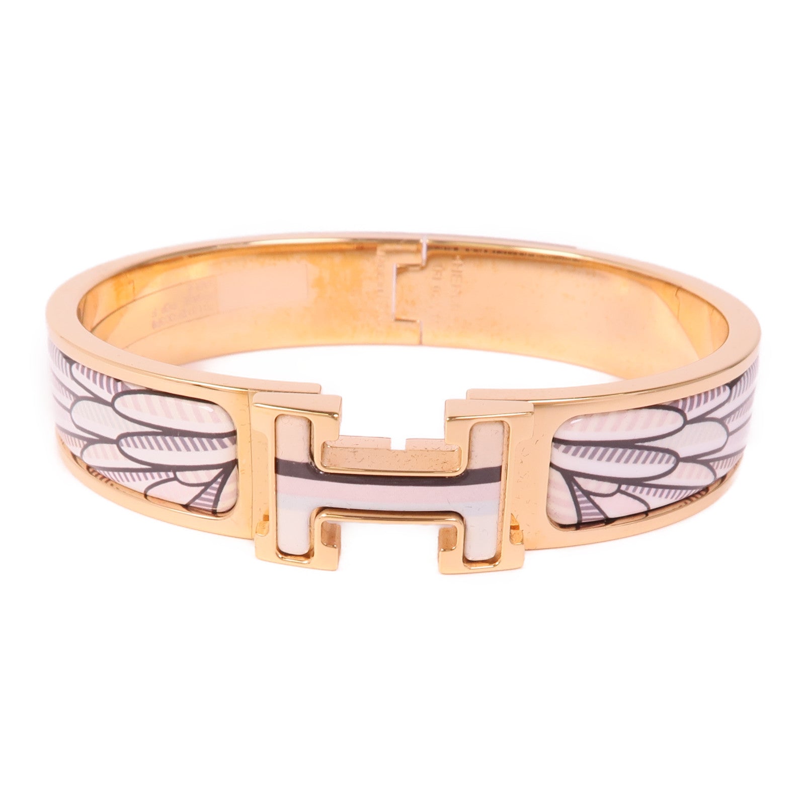 HERMES 琺瑯/金屬Clic H手鐲White/Black