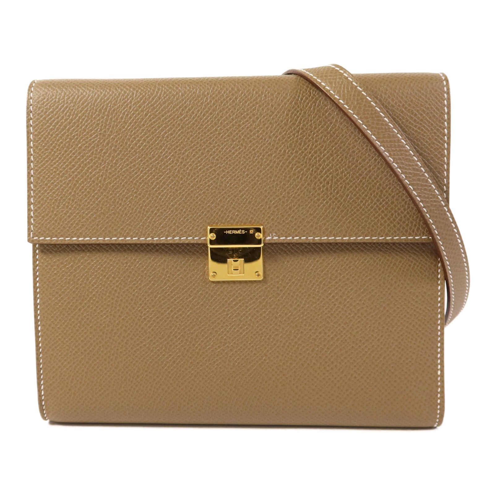 HERMES Epsom皮革Clic 16金扣肩背袋Etoupe