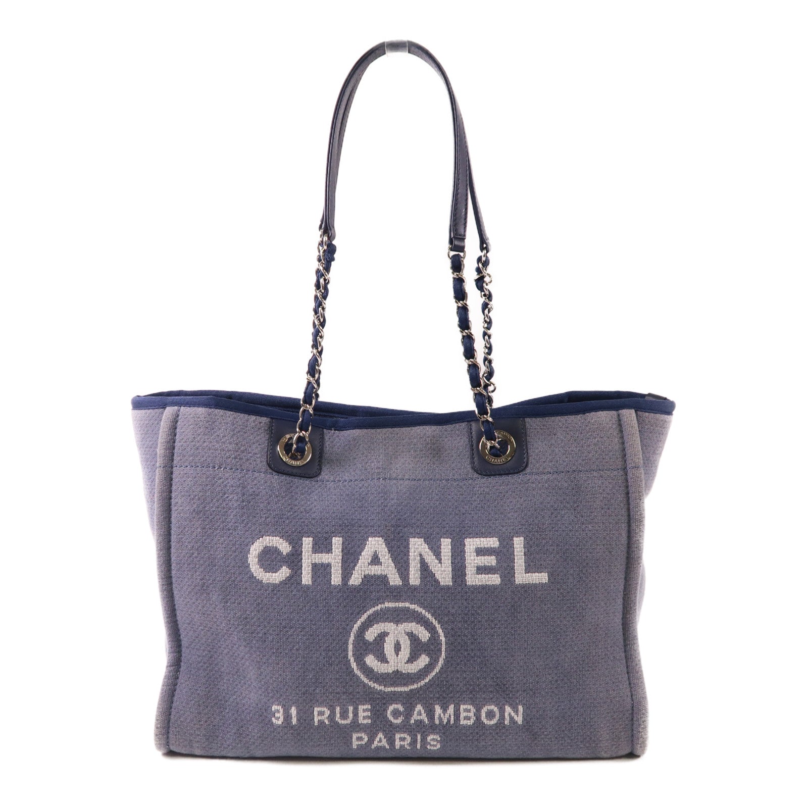 CHANEL 帆布Deauville Tote銀扣肩背袋