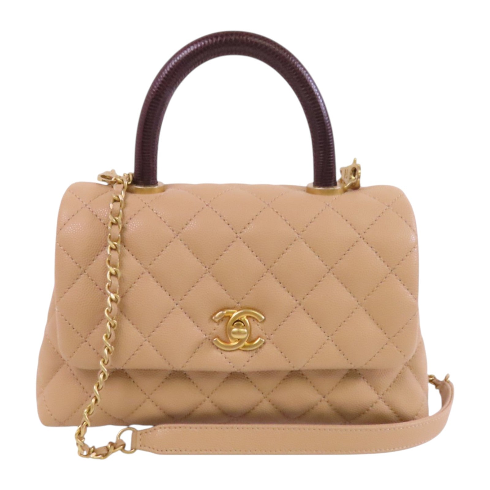 CHANEL 牛皮皮革/蜥蝪皮革Coco Handle金扣手挽肩背兩用袋
