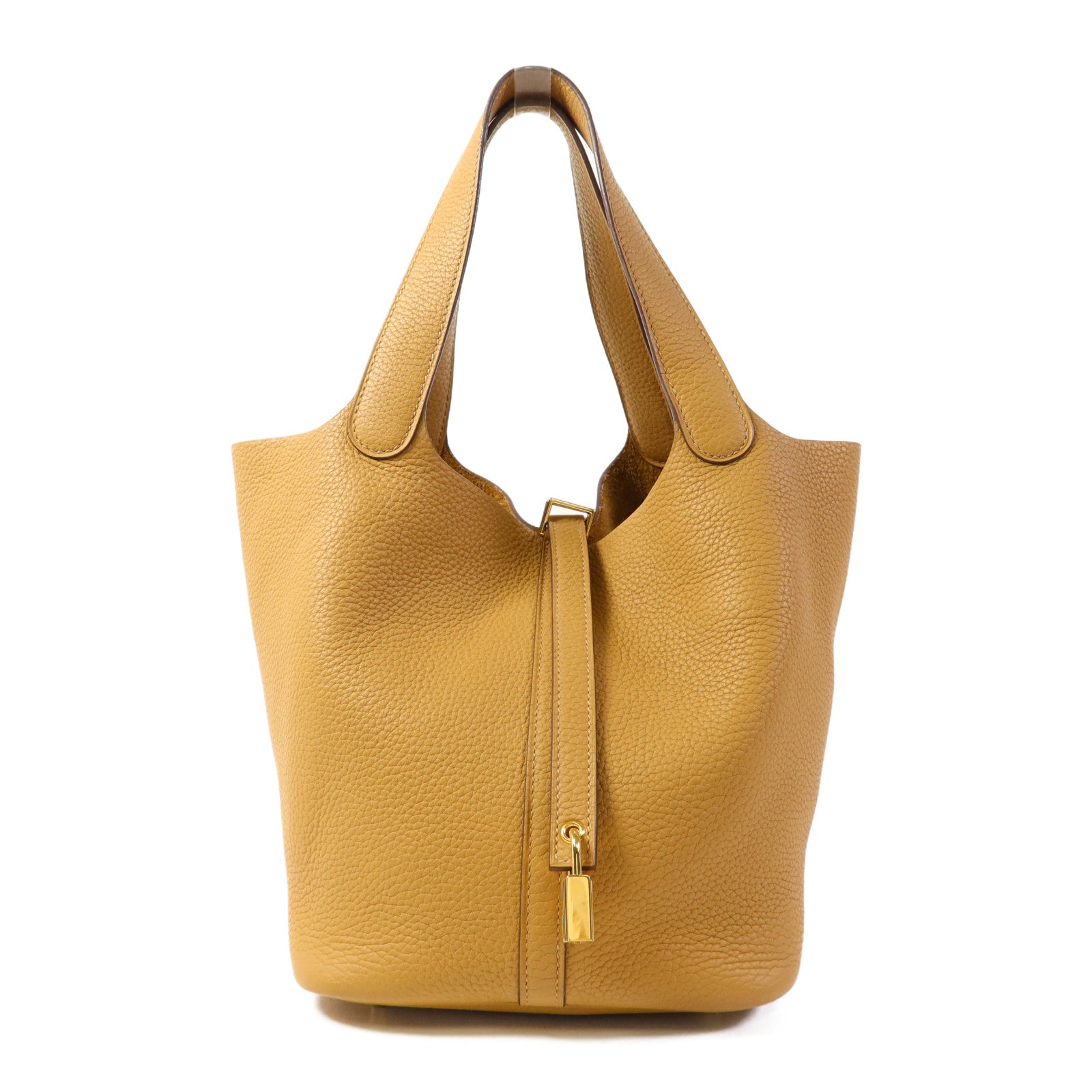 HERMES Clemence皮革Picotin MM金扣手挽袋Biscuit