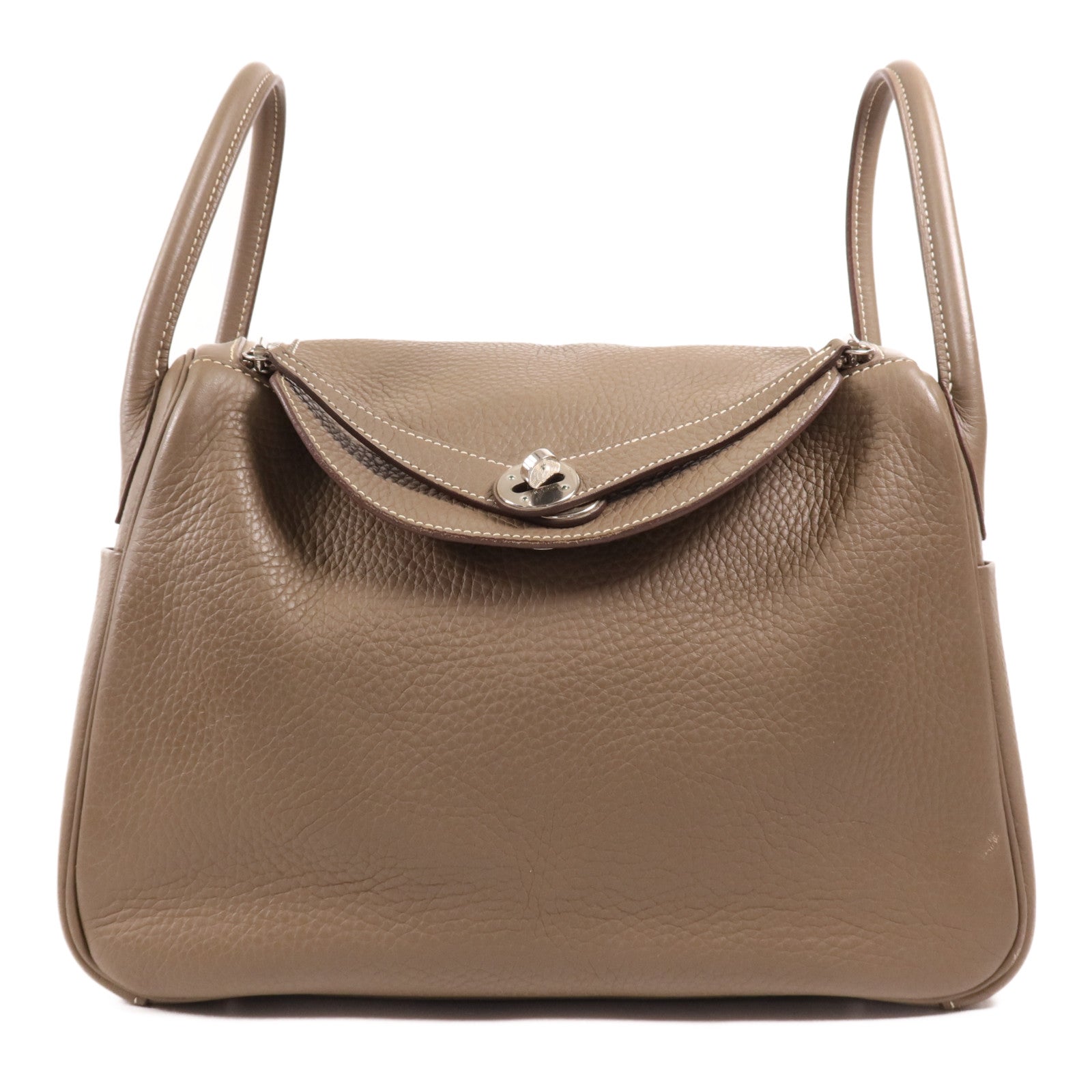 HERMES Clemence皮革Lindy 30銀扣手挽肩背兩用袋Etoupe