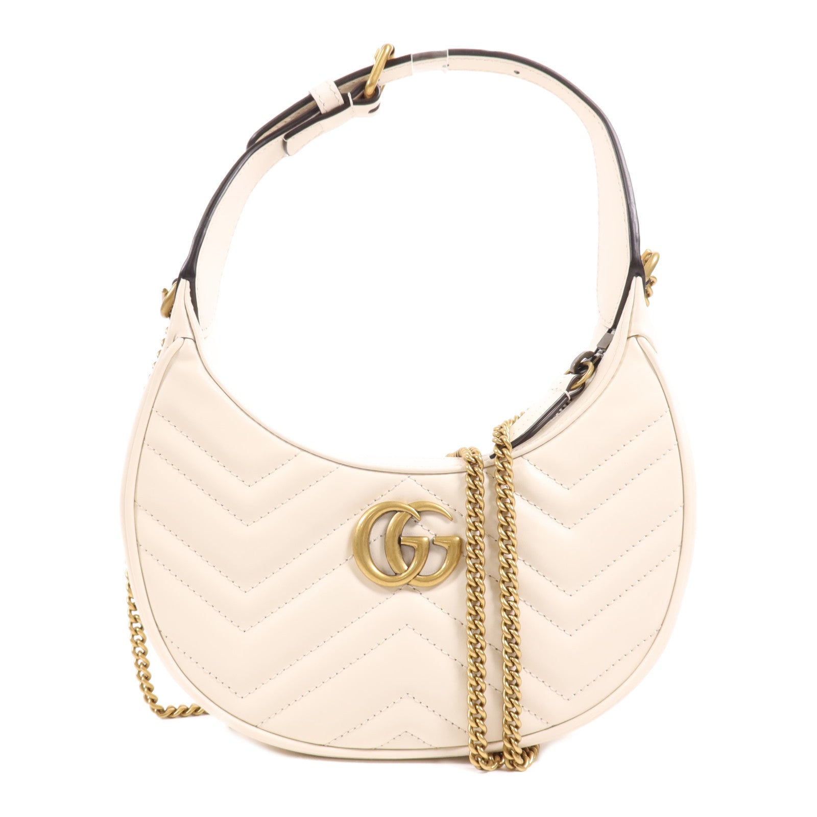 GUCCI 皮革GG Marmont Half Moon金扣手挽肩背兩用袋