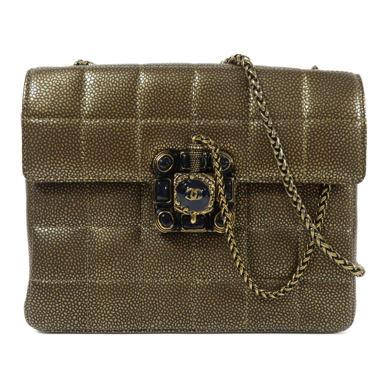 CHANEL 皮革Square Quited Paris Byzance金扣鏈帶肩背袋