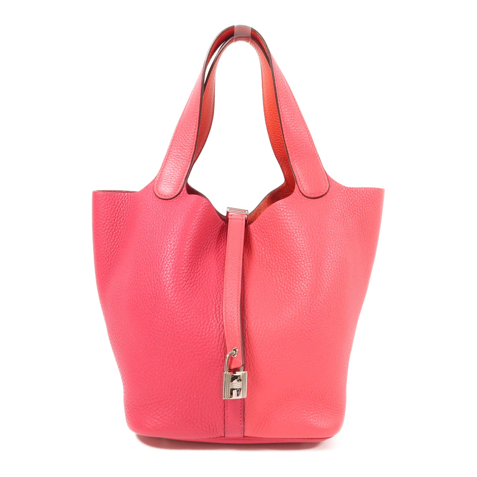 HERMES Clemence皮革Picotin MM銀扣手挽袋I6 Rose Extreme