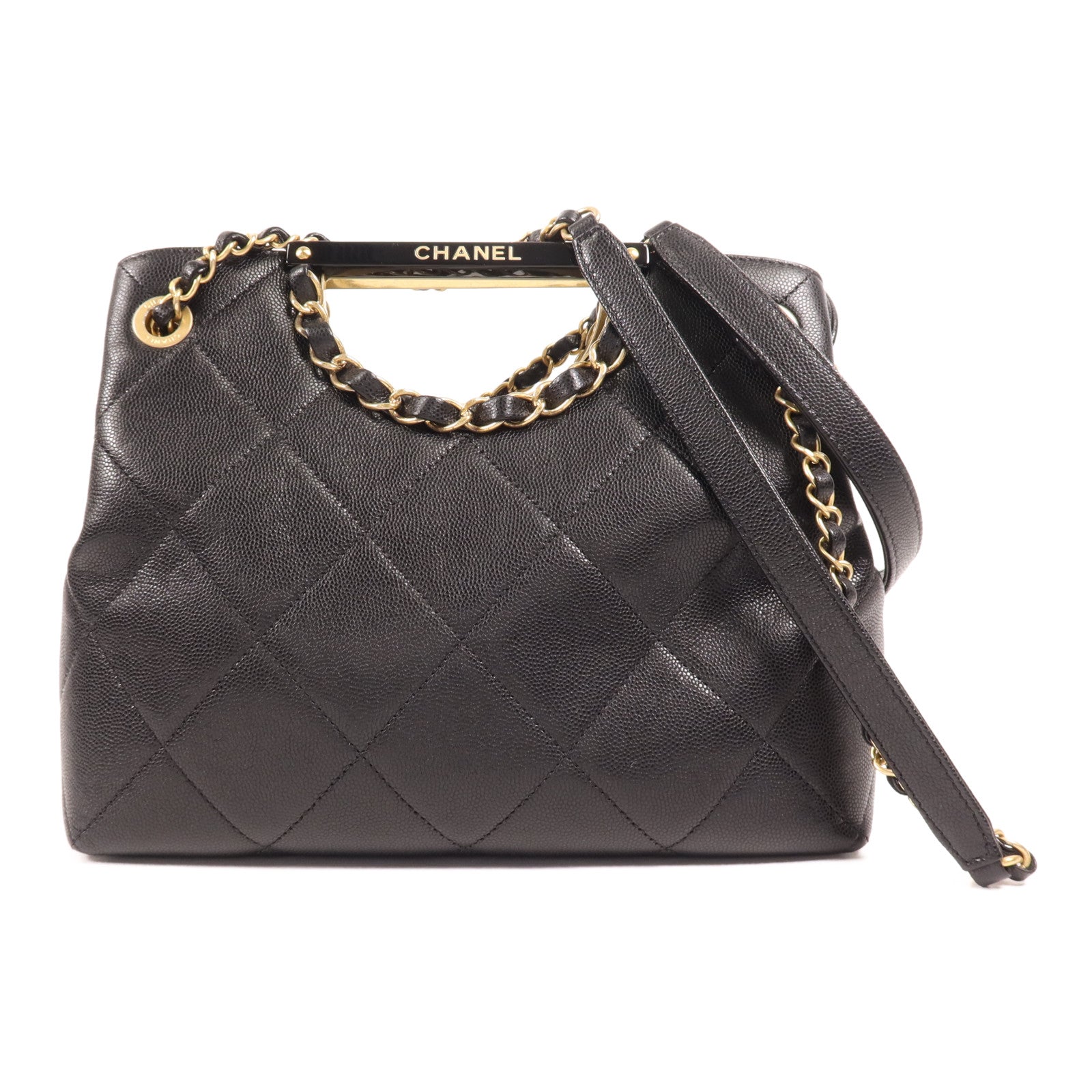 CHANEL 牛皮皮革Chain Shoulder金扣手挽肩背兩用袋