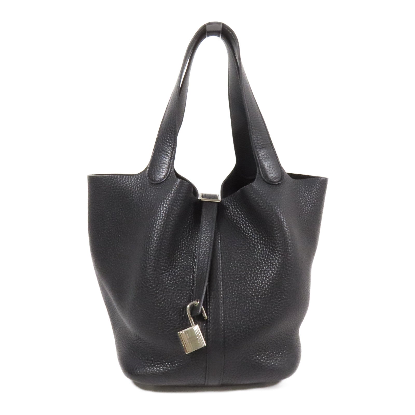 HERMES Clemence皮革Picotin MM銀扣手挽袋Noir