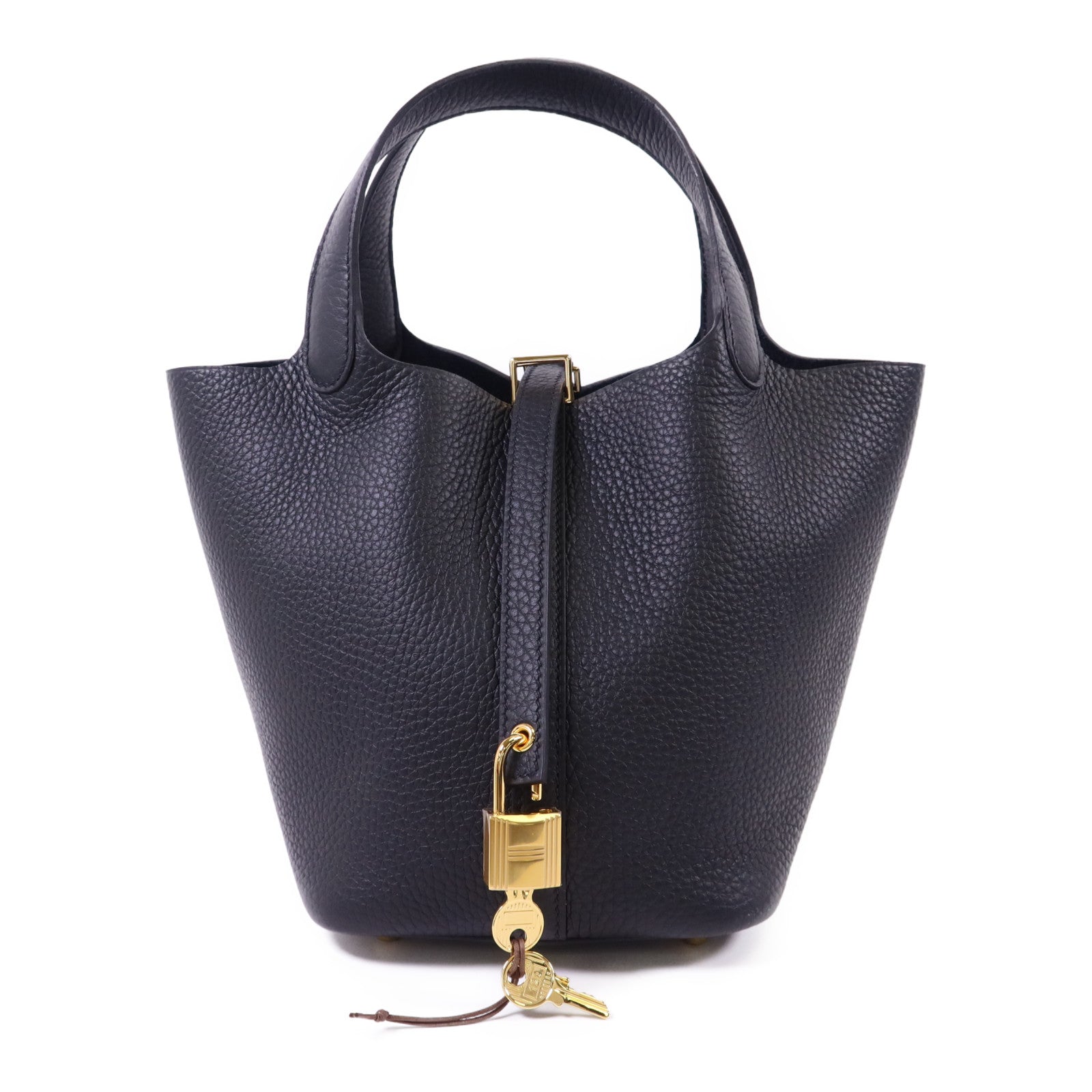 HERMES Clemence皮革Picotin PM金扣手挽袋Noir